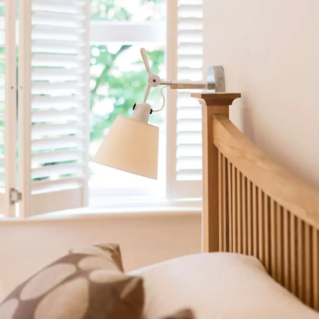 The Artemide Tolomeo Wall Shade Sconce provides adjustable, bright lighting for the contemporary bedroom, living room or study. Adjusts to a full downward position and 30 degrees upward. Designed by Michele De Lucchi and Giancarlo Fassina, the Tolomeo received the 1989 Compasso d'Oro award for excellence in engineering and performance.