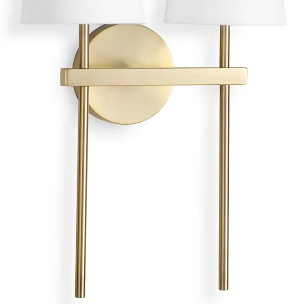 The Toni Double Wall Sconce from Regina Andrew is a luxurious and minimalistic light fixture that adds elegance and sophistication to your environment. Crafted from high-quality steel, this exquisite wall sconce is durable and made to last. With their tapered design, the natural linen shades add character to the streamlined steel frame. This transitionally styled double wall sconce is illuminated by LEDs that bring candelabra-style lighting to your setting. You can effortlessly adjust the brightness with a separately sold ELV dimmer.