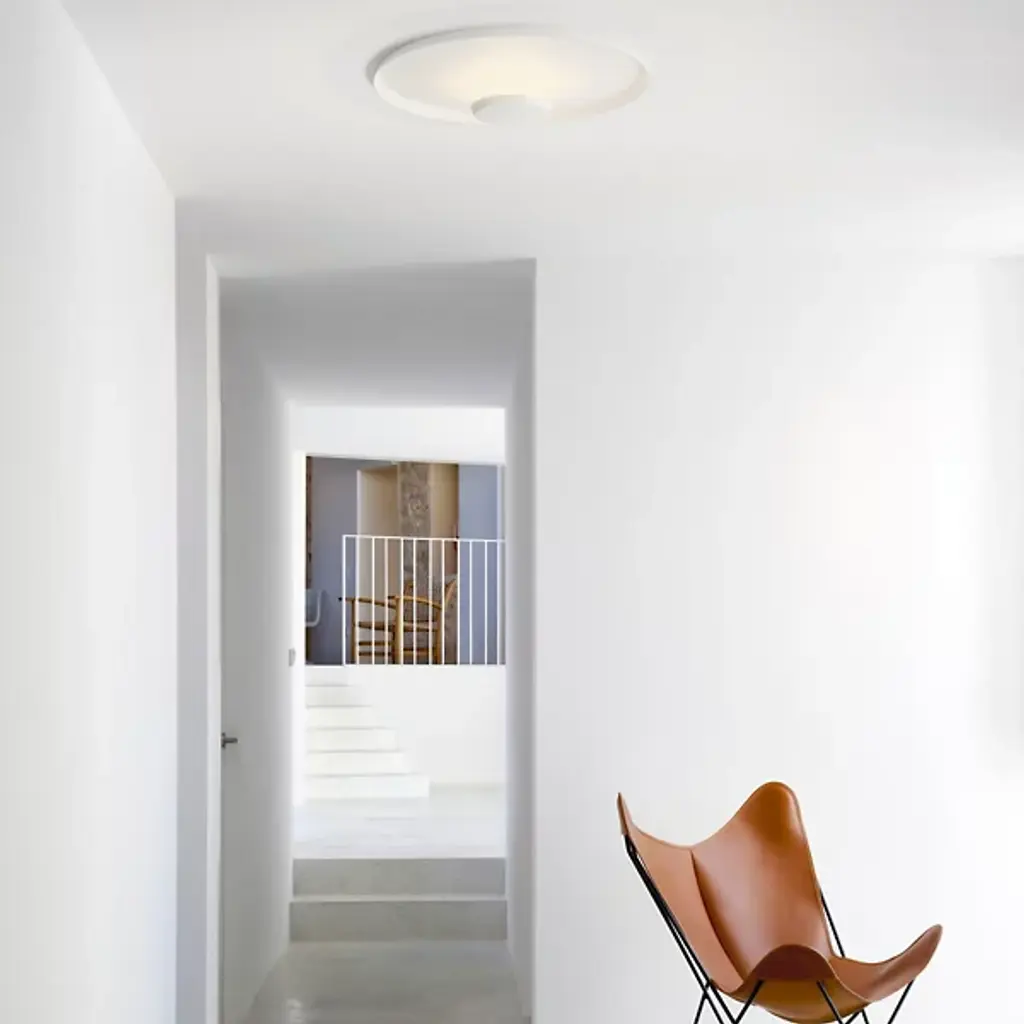 The Top LED Wall Sconce/Flushmount by Vibia is a design by the multidisciplinary duo Ramos & Bassols that reimagines the timeless ceiling rose. A set of circles are paired together for a simple, minimal look that allows a layer of indirect light to originate from within the diameter of this design. This creates a warm, welcoming atmosphere while the balanced composition of this close-to-the-ceiling fixture is dressed up with a uniform finish.