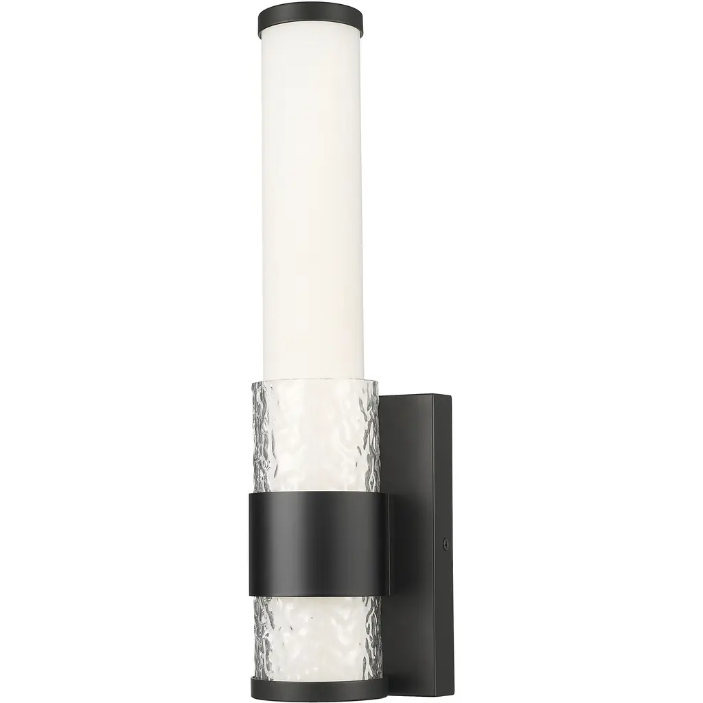 ADA Compliant, this Torch Indoor Sconce gives a contemporary look, with its double-glass, opal glass within a clear seeded glass cylinder. Crafted in steel and available in any of Hubbardton Forge's standard finishes.