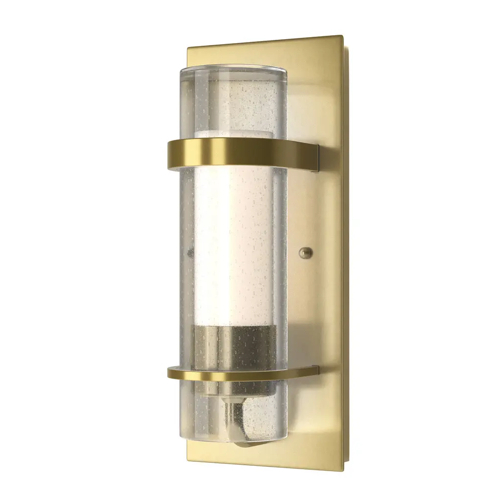 ADA Compliant, this Torch Indoor Sconce gives a contemporary look, with its double-glass, opal glass within a clear seeded glass cylinder. Crafted in steel and available in any of Hubbardton Forge's standard finishes.