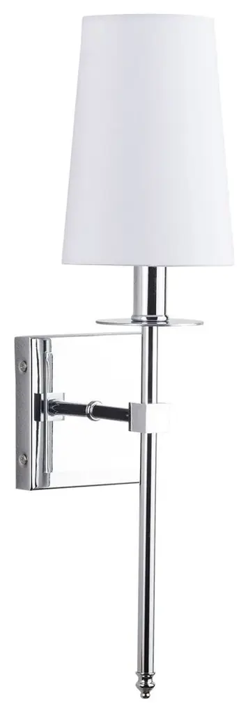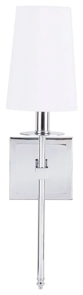 The Torcia wall sconce, made by Linea di Liara, brings a touch of contemporary sophistication perfect for bathrooms, bedrooms, corridors, entryways and living areas.- 17" high x 5" wide, extends 6" from the wall. Backplate is 4.5" in diameter. Features a 8" high x 5" diameter white fabric shade- Features an E26 socket that is compatible with a variety of incandescent, LED, CFL and halogen bulbs (60W max, sold separately). Fully dimmable when used with a dimmable bulb and compatible dimmer switch- Features a universal mounting plate compatible with most 4" octagonal, round and square or 2" x 4" junction boxes (must be hardwired, installation by a licensed electrician recommended)- This Linea di Liara product is UL listed, and is backed by a 1 year limited manufacturer''s warranty