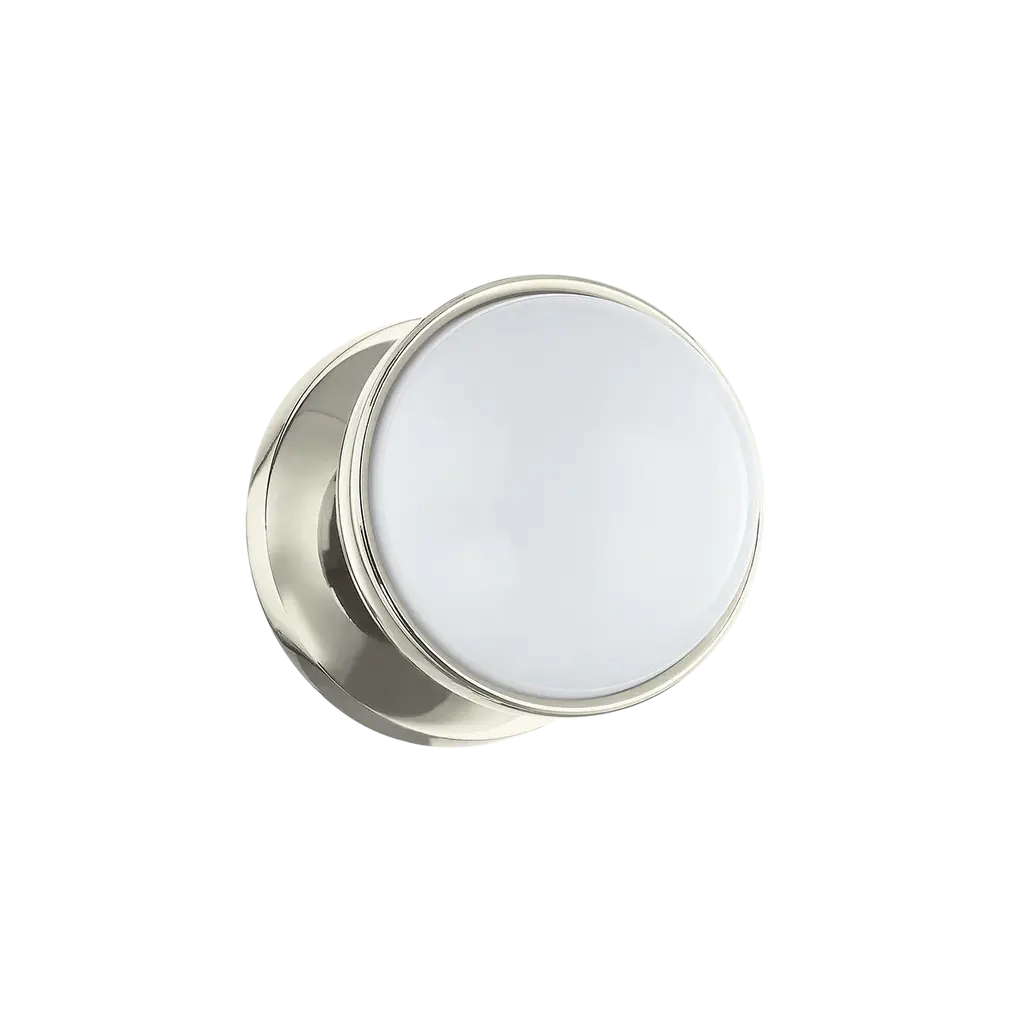 The Sconce Lamp features an elegant mouth-blown glass diffuser paired with an LED Puck light source, available in matte white, dove gray, or black finishes. It can be upgraded with premium walnut or brass faceplates. The glass shades come in etched white, amber, clear, and smoke finishes, making it versatile for different environments. Additionally, it is ADA-compliant, making it a great choice for corridors and living spaces.