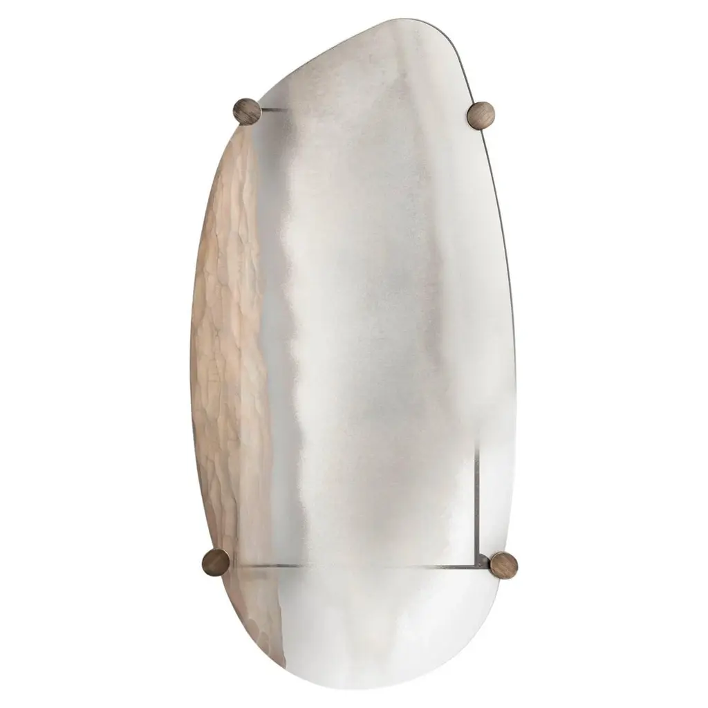 The Toubkal Geometric Wall Sconce from Dounia Home adds a bespoke, geometric accent to walls, with bespoke craftsmanship creating appealing individuality. Each sconce is handmade by Moroccan artisans and uses an angular metal wall plate to support a single lamp on its lower end. The lamp itself is damp-listed, with any direct glare easily moderated by the porcelain orb shade surrounding it, transmitting a warm wash of light across the surface of the wall plate. The handmade nature of each piece reveals individual imperfections, illuminated by the light and revealing each element.