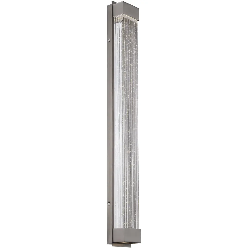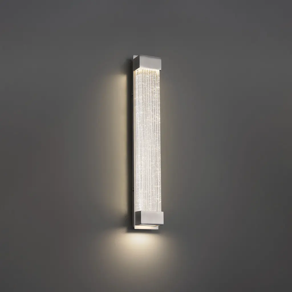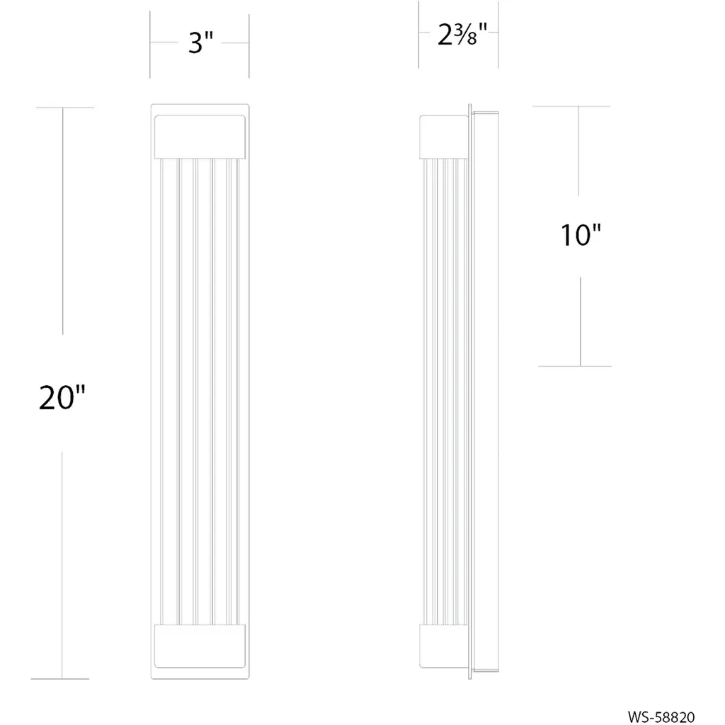 The Tower wall sconce features a rectangular cylinder of ribbed glass, mounted on a sleek metallic backplate, creating a visually intriguing display from 3500K LED illumination. Gleaming metal caps on each end add a polished touch, and the wall sconce can be mounted vertically or horizontally to suit your space. Offered in 14, 20 and 27-inch sizes, Tower is available in a choice of aged brass or brushed nickel finishes.