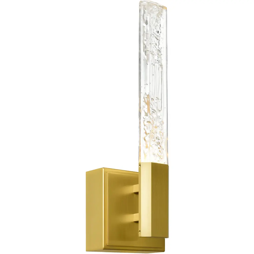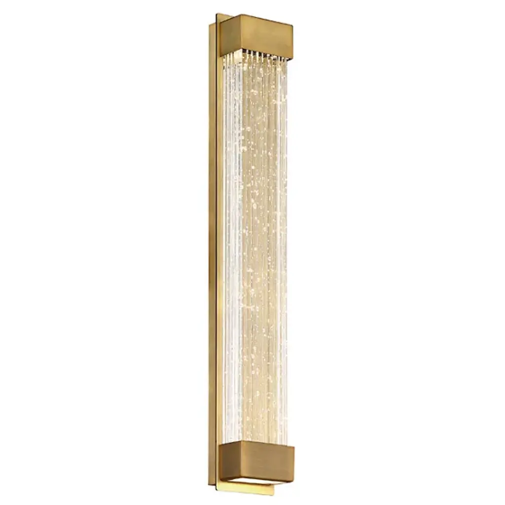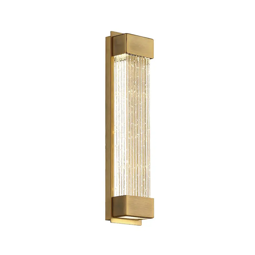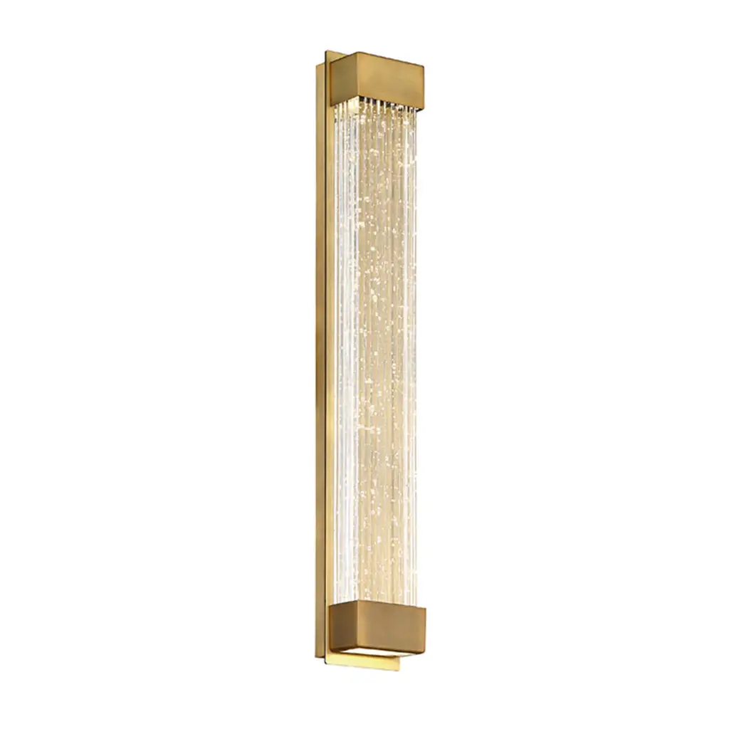Featuring an aged brass finish that’s right in line with the latest trends, Tower brings understated luxury to every setting. The painstakingly V-cut seeded crystal inset adds a touch of glamour. With LEDs to light the crystal from both ends, plus a bonus hidden up light or down light, this sconce delivers the best of both worlds - warm ambience and quality indirect illumination. Features