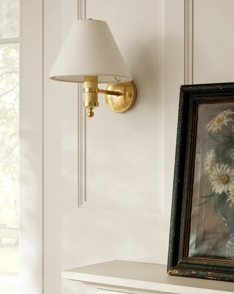Designed by our in-house team, our Townes Sconce elevates your home lighting with elegant style and enduring character. A reeded brass rod and ball pip finial offer a refined look that is distinctive yet classic and beautifully balanced with a tapered linen shade. It exudes luxurious warmth and timeless appeal wherever it is styled in your home.