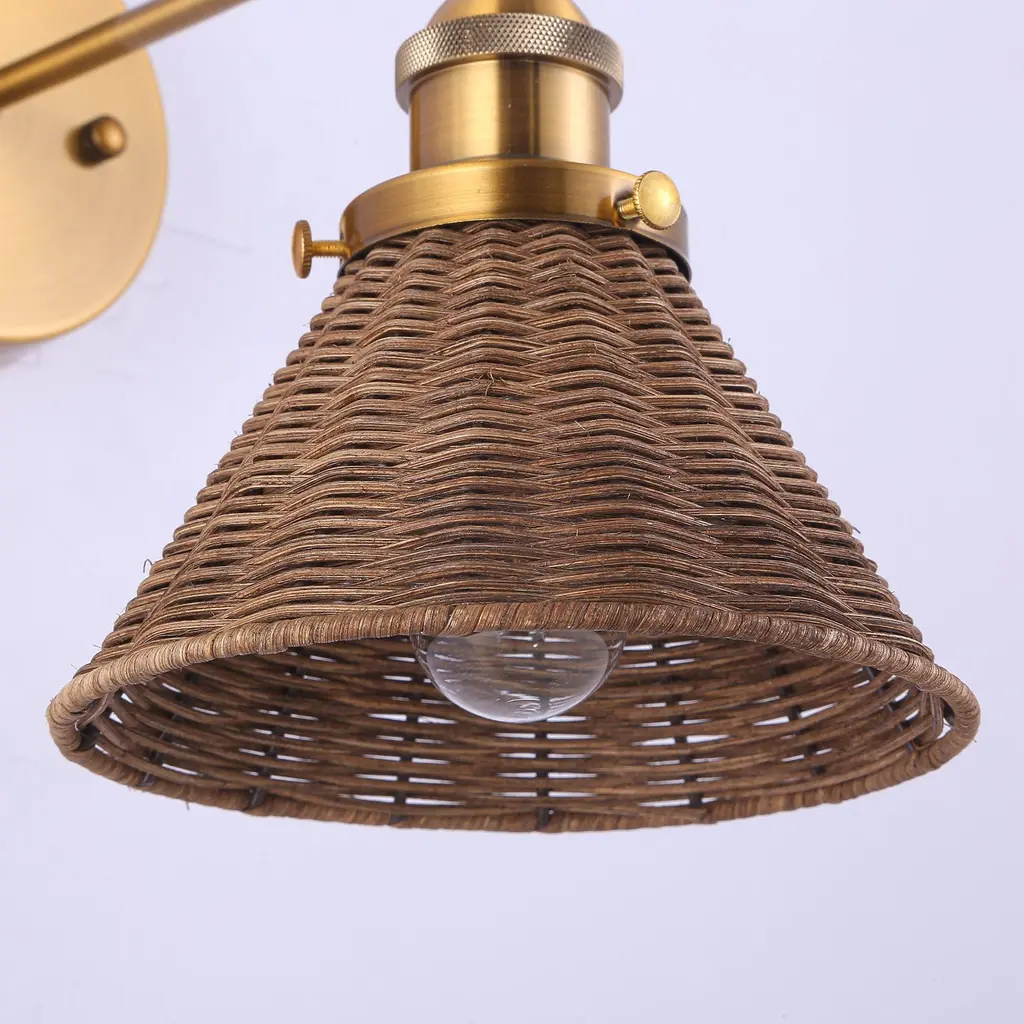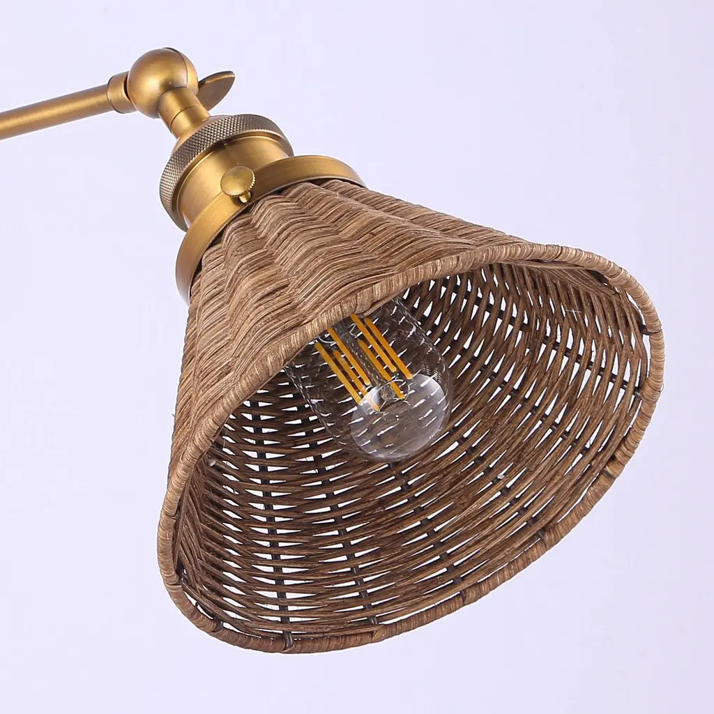 Add a casual vibe to your decor scheme with this swing arm wall light. A rattan lampshade is the main focal point of the chic wall light. With a handsome black finish, the natural hue lends a neutral feel to the space. The rattan shade is fully adjustable, giving you complete control over your lighting needs. The combination of the rattan basket with the sleek metal arms keeps things interesting while still being a utility-driven fixture. The light is easy to install, if you don't need wires, just mount it to the wall and plug it in. Using the wall switch allows you to easily control the lights.