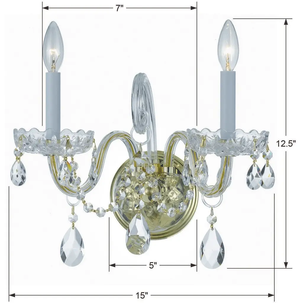 Traditional Crystal 2 Light Spectra Crystal Polished Brass Sconce