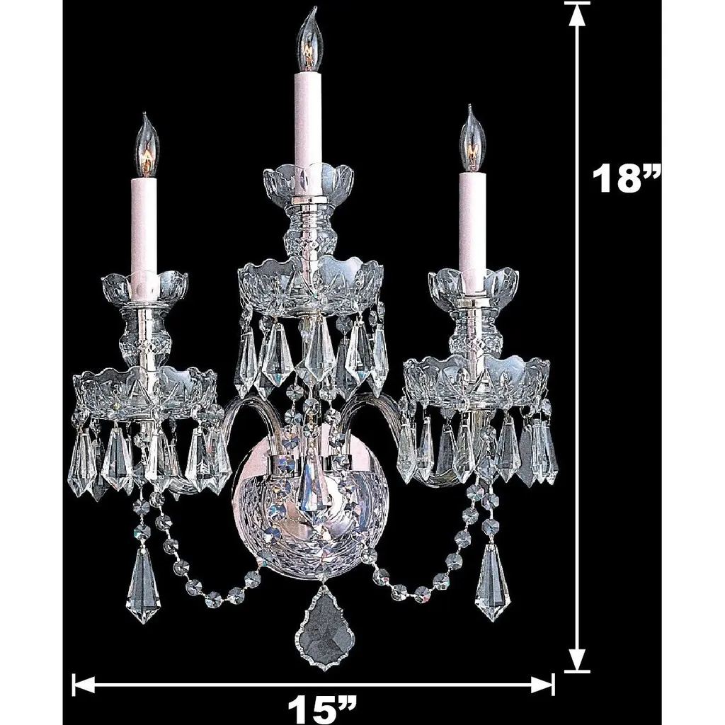 Traditional Crystal 3 Light Hand Cut Crystal Polished Chrome Sconce