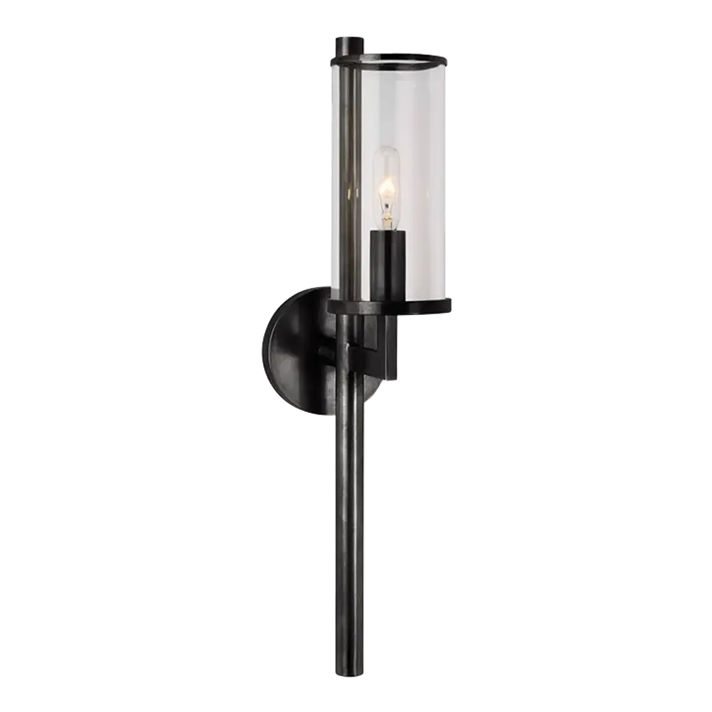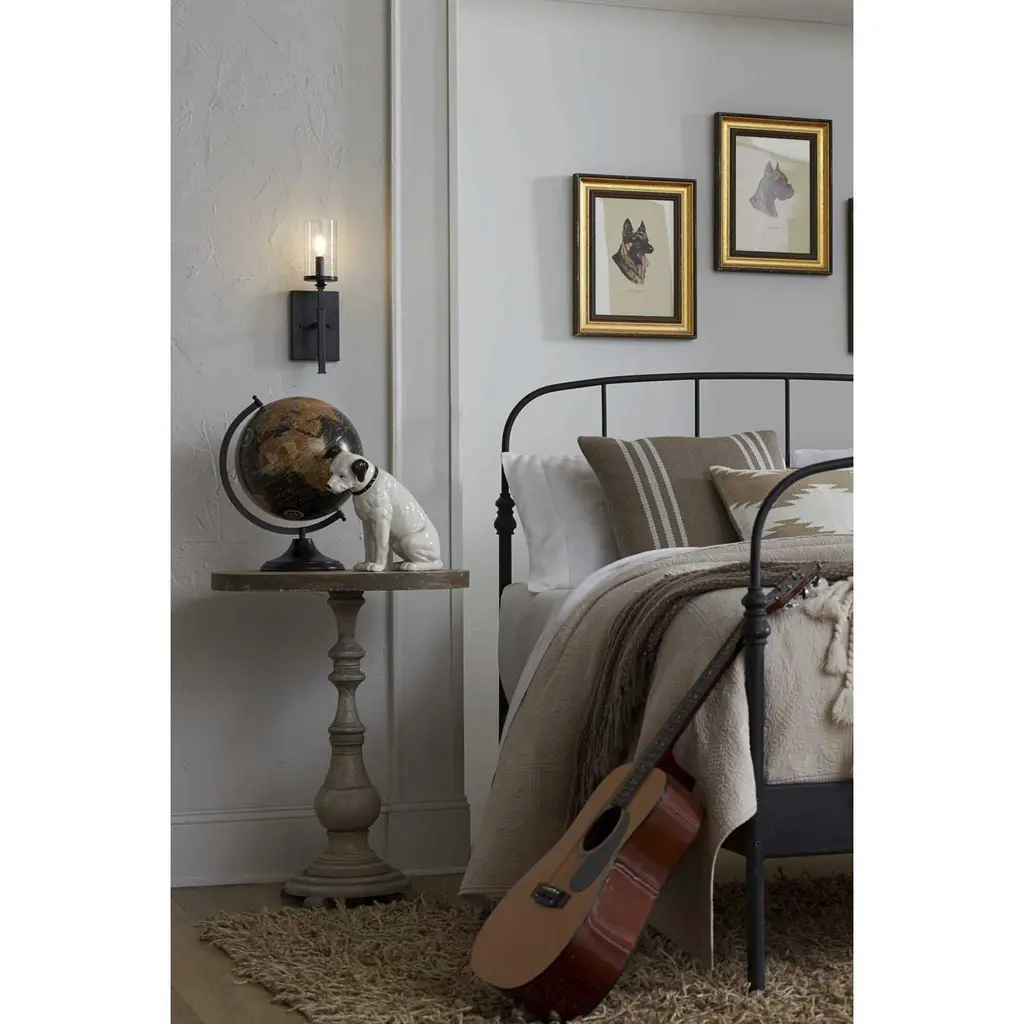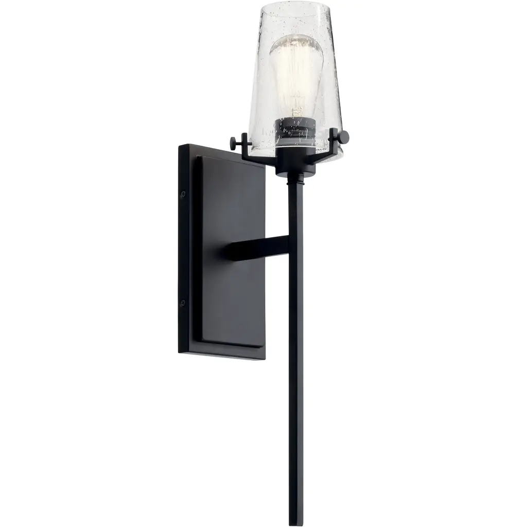 A display of substantial style in an one-light wall bracket, Tralee Collection’s frame was inspired by the elegance of traditional iron structures. Specific attention to forging details creates a distinctive collection for Transitional and Farmhouse interior spaces. Seeded glass shades and a Graphite finish pair together to complete the look.