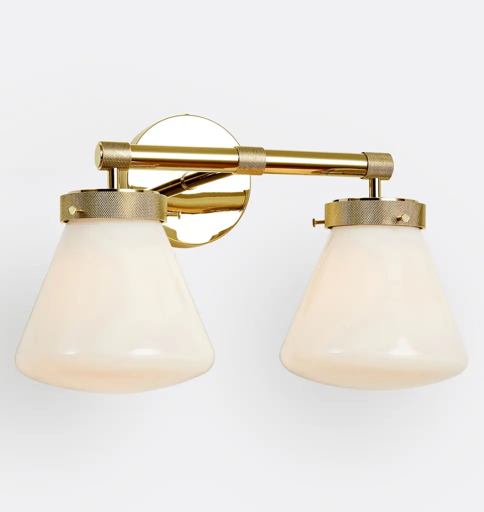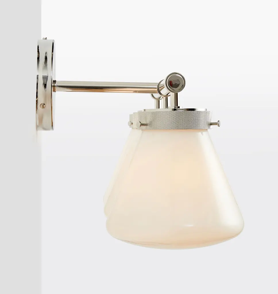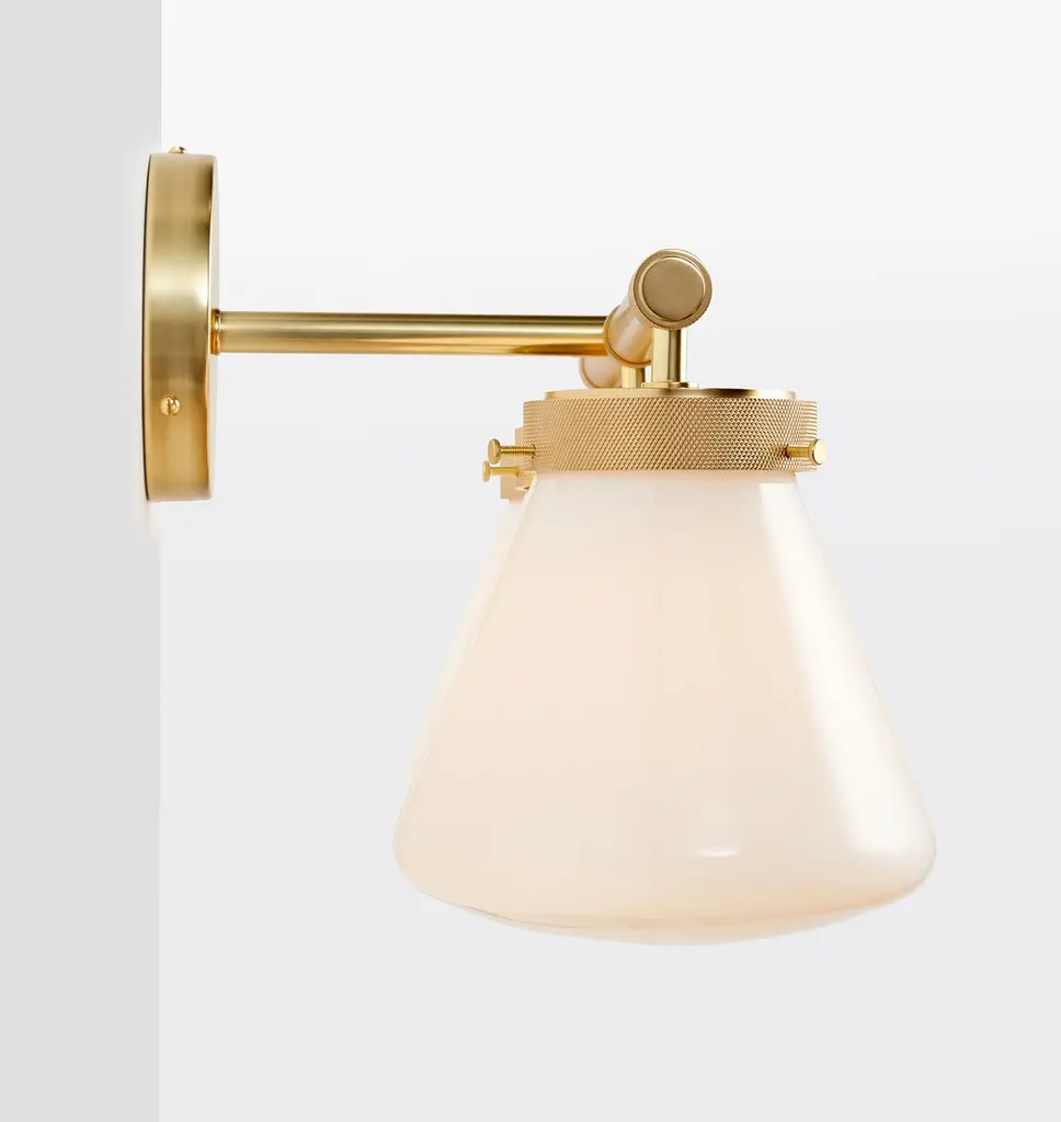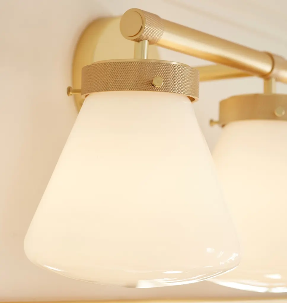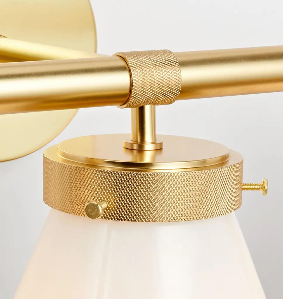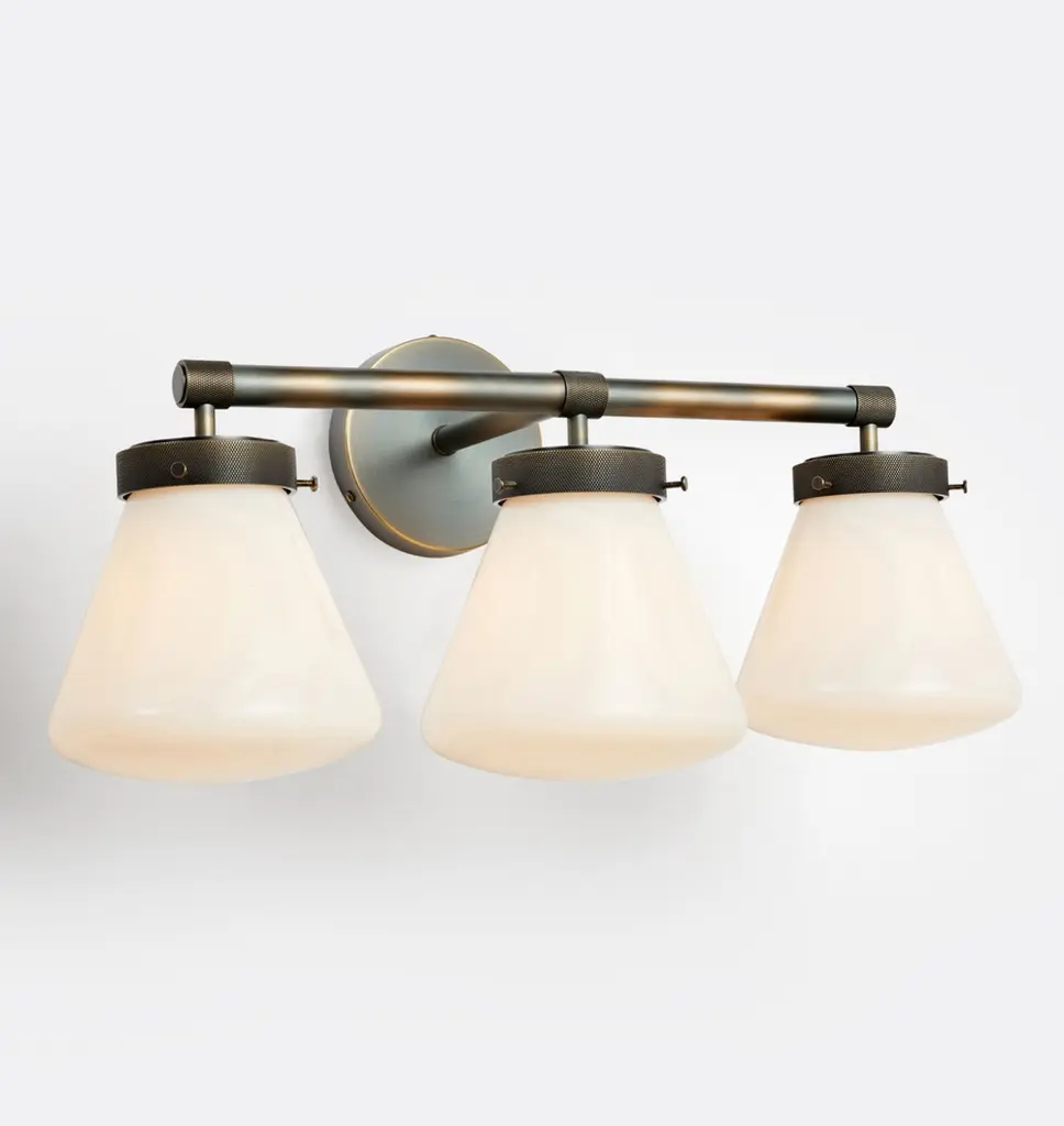 Inspired by industrial factory lighting from the 1950s, our Trask Triple Sconce features beautifully knurled details and three stunning opal glass shades. Add to any bathroom for instantly elevated look. Available in several finish options. Details You'll Appreciate Industrial-inspired design Designed to match our Trask Hardware Collection Available in several finish options Can be paired with multiple shade styles for a customized look Designed in Portland, Oregon and made at our Portland factory from imported parts Product Specifications Brass fixture Glass shade Hardwired; professional installation recommended Assembled to order in Portland, OR For indoor and covered outdoor use (UL Rated Damp) Imported Care Instructions If needed cleaned with a soft damp cloth.