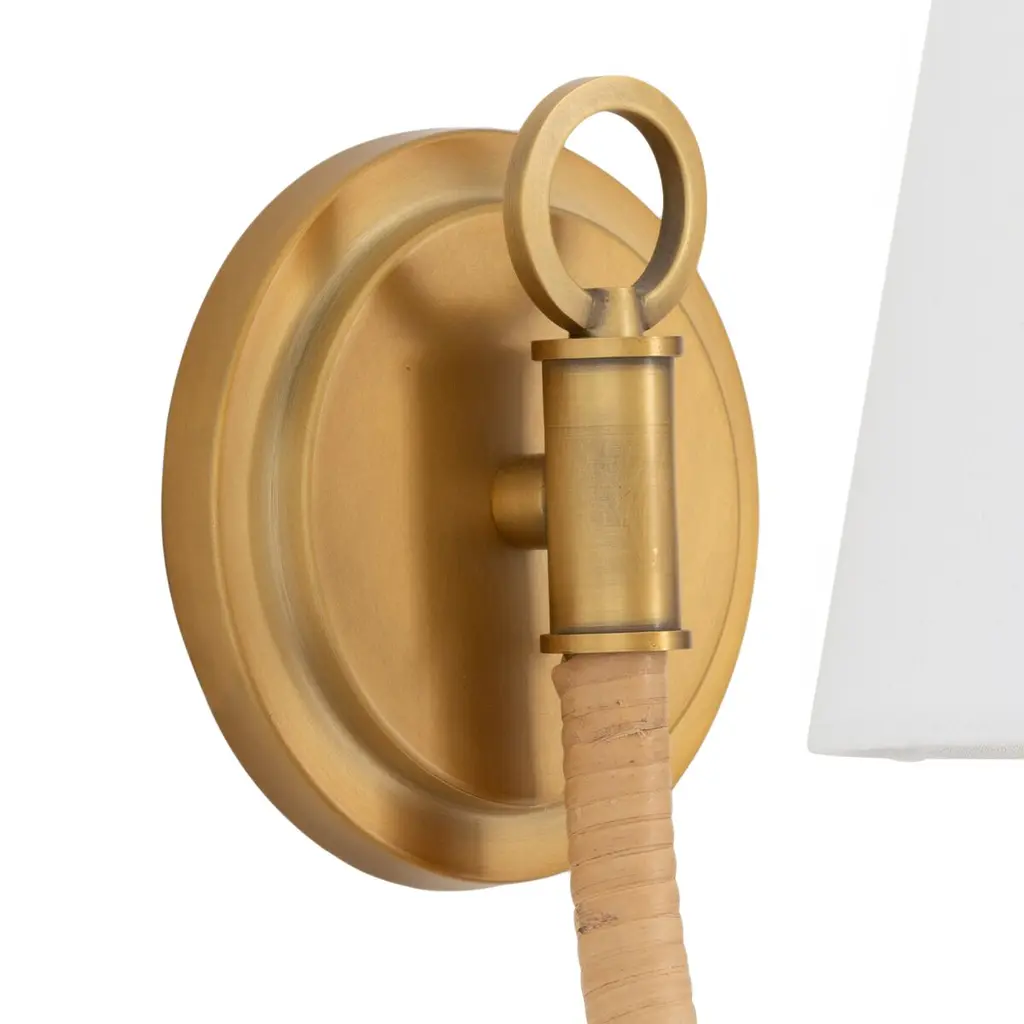 Introducing the Treble Sconce, a timeless addition to your coastal-inspired decor. Featuring a classic bent arm silhouette adorned with a bamboo-wrapped design, this sconce exudes coastal charm and natural elegance. Perfect for bringing a touch of seaside ambiance to any space, the Treble Sconce combines traditional style with organic textures for a truly captivating lighting solution.