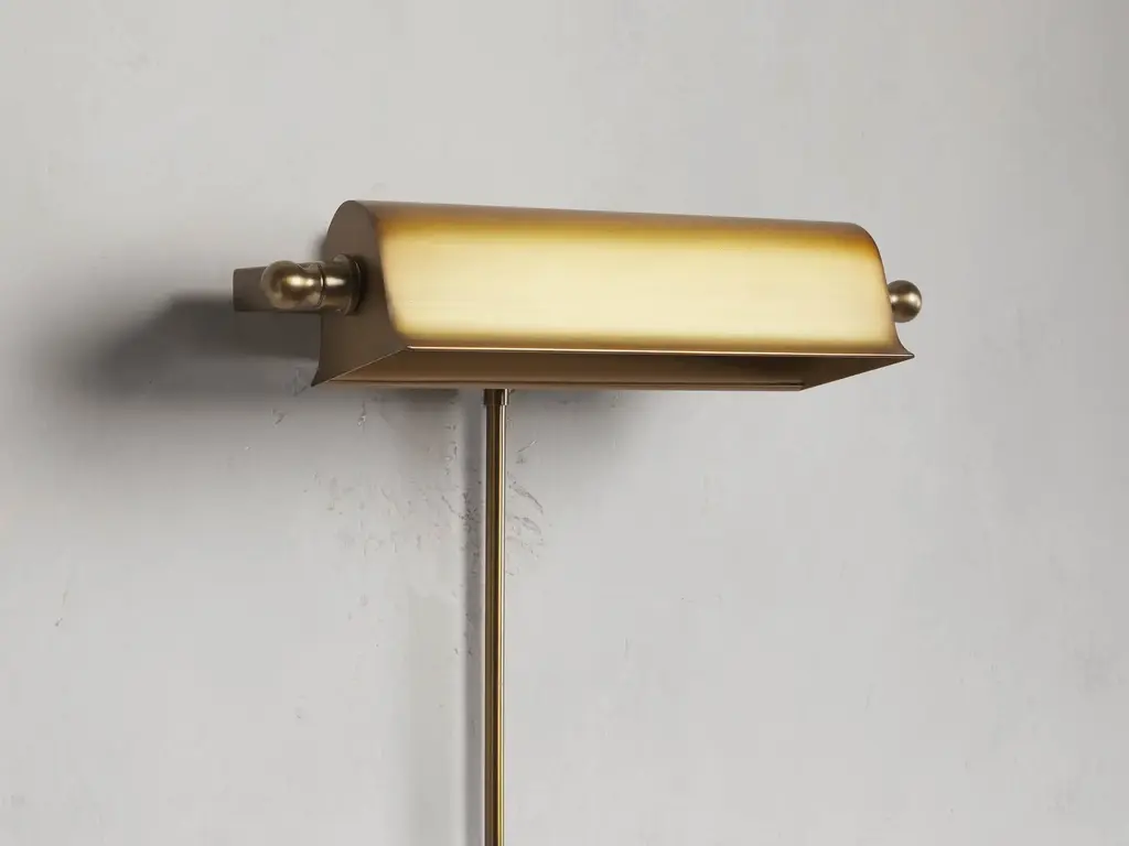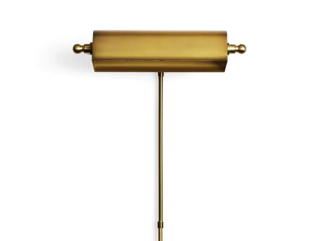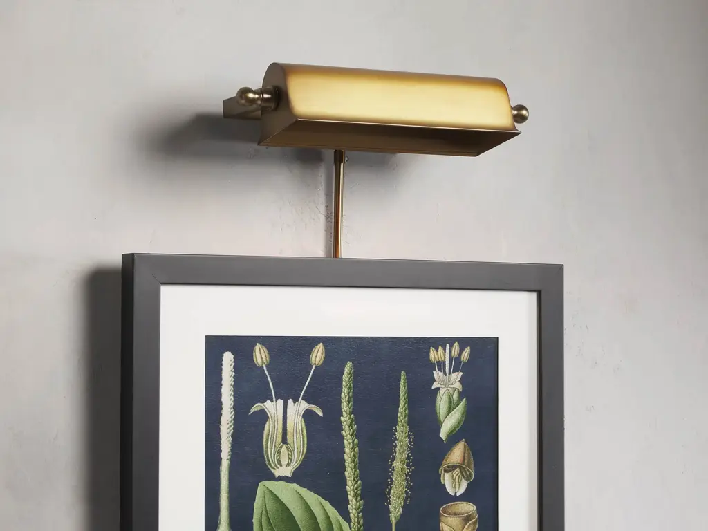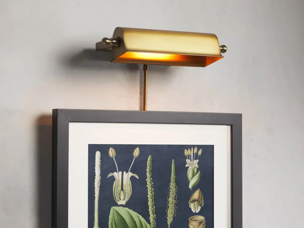 Crafted from steel and plated in an antiqued metallic finish, our Tremont Picture Light’s detailing perfectly complements warm wood tones and the soft atmosphere typically found in libraries or dens. Designed to be mounted directly onto the pieces of our Tremont Wall Collection, this sconce can also be placed on a wall to highlight artwork in rooms and hallways. It can be plugged into a standard wall outlet or hardwired by cutting its 12' long cord.