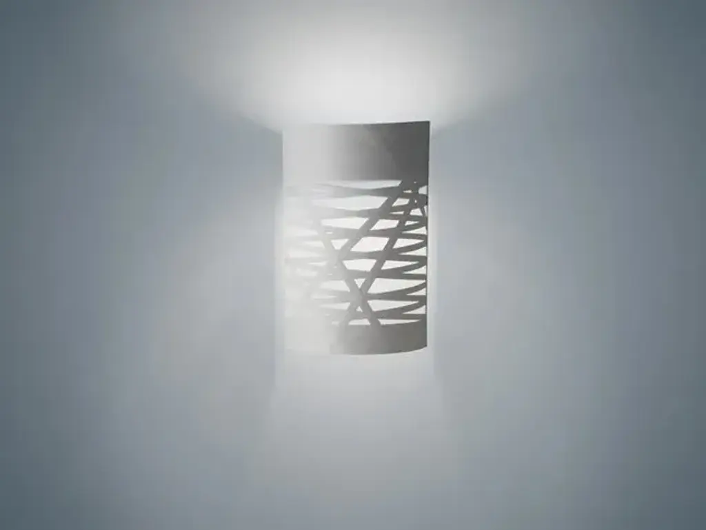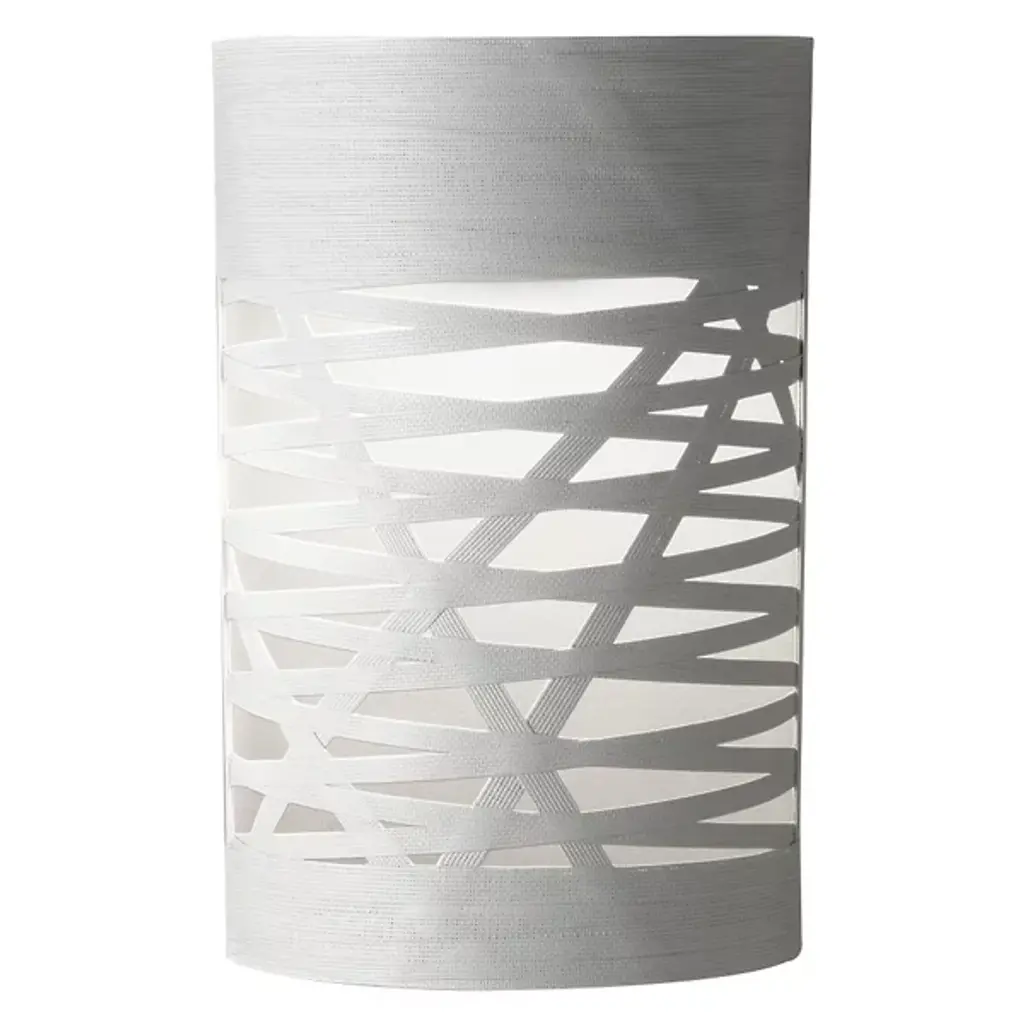 Tress is a wall lamp made of compound material on lacquered glass fibre base and vernished metal.LIGHT SOURCE220/240VLED retrofit, FluoMax 1X120W R7sNo dimmableIP 20Bulb not includedA ribbon of glass and resin woven with orderly randomness forms the structure and decoration of the lamp. A graphic, theatrical presence, thanks to the light that filters through the composite material, diffused in space and directed upward.