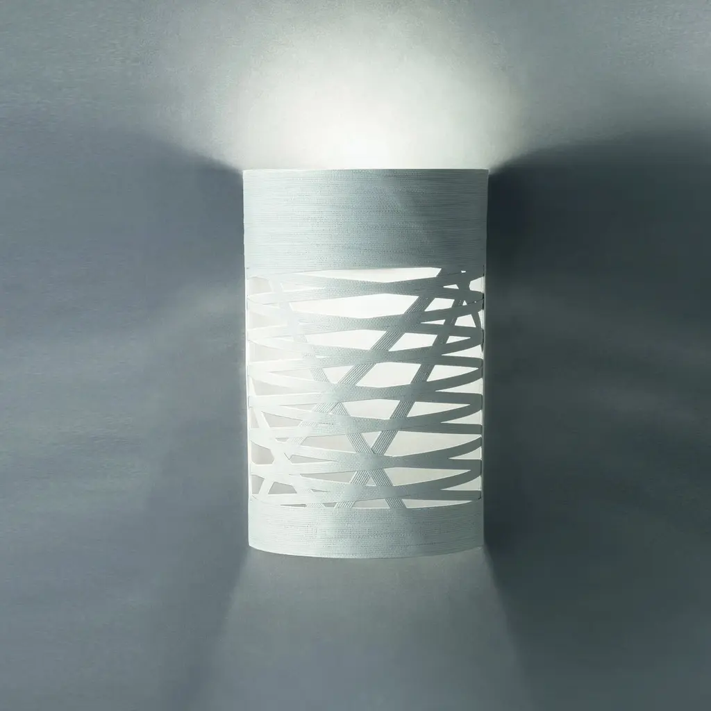 The seduction of a woman’s tress was the initial inspiration for the Tress family of lamps. This design-come-true by Foscarini was achieved through the development of a completely original technological process, involving a fiberglass and resin tape woven together with orderly casualness to become the structure and aesthetics of the lamp. Tress changes personality according to its color: it is light and discrete in white, strong and decisive in black, which makes the contrast between the interior and the exterior even more evident. The wall version occupying minimum space, has been designed to create a magnificent theatrical effect thanks to the way the light is diffused into the surrounding environment and directed towards the ceiling. Features