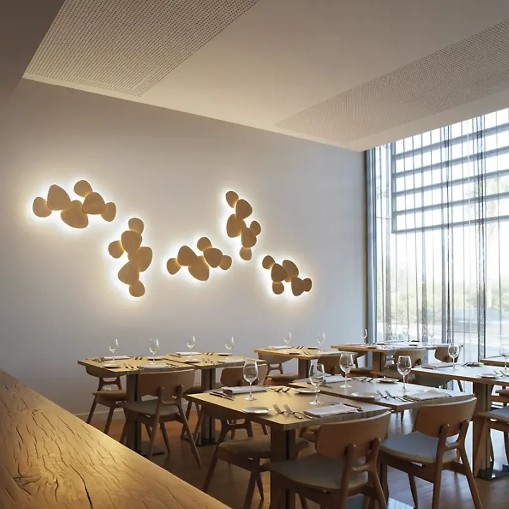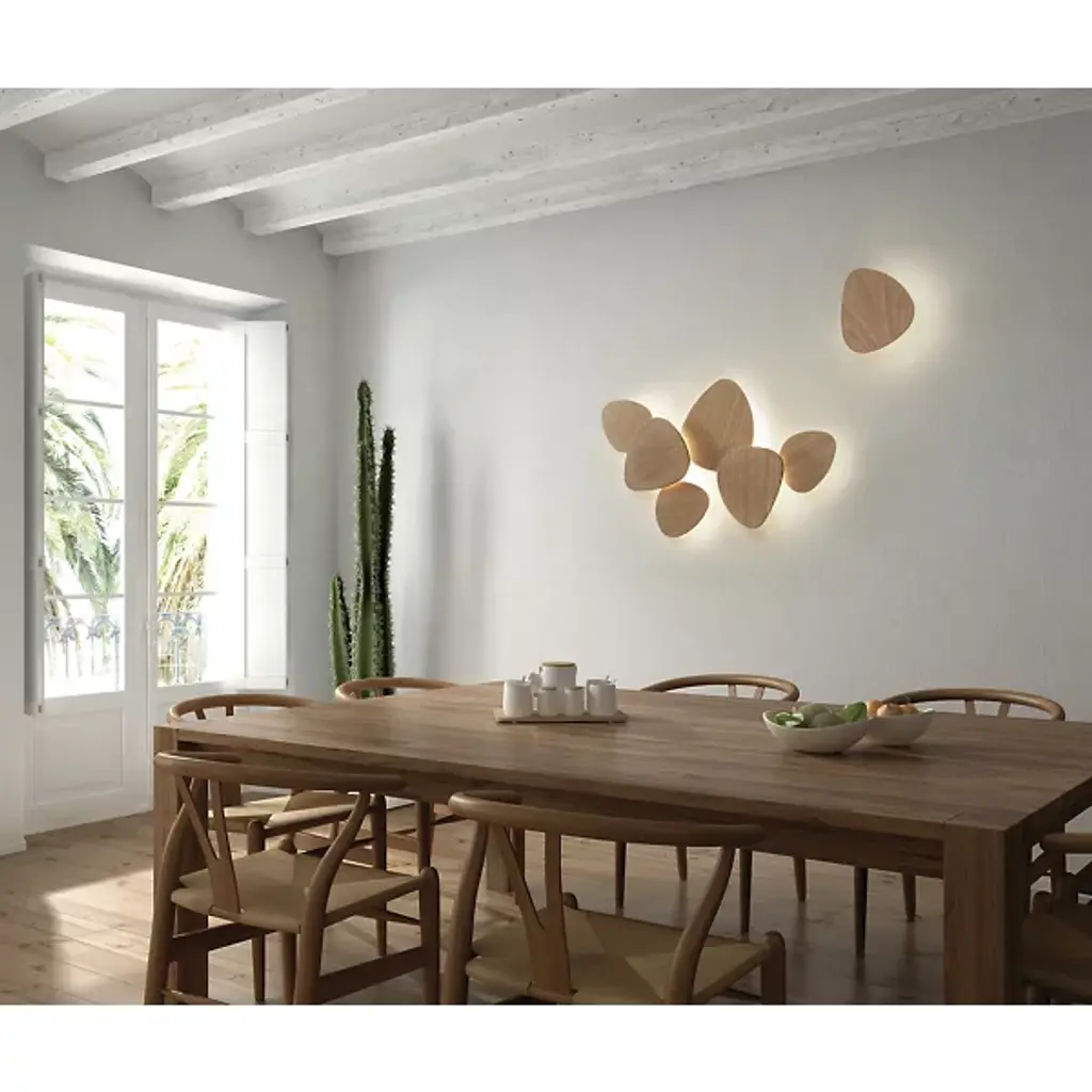The Bover Tria Multi-Light LED Wall Sconce is an organic gathering of rounded diffusers, designed as a modular system with a unique interpretation of indirect light. Composed of flat Oak plates (left in either a natural state or lacquered), each set of diffusers is designed to layer around one another, bringing light and silhouetted shadows together. Each diffuser is equipped with an LED module hidden from view, but is controlled from a single wiring point from behind one of the solid diffusers.