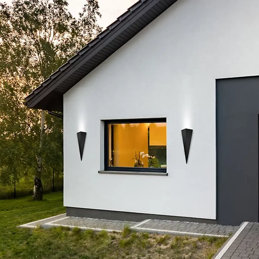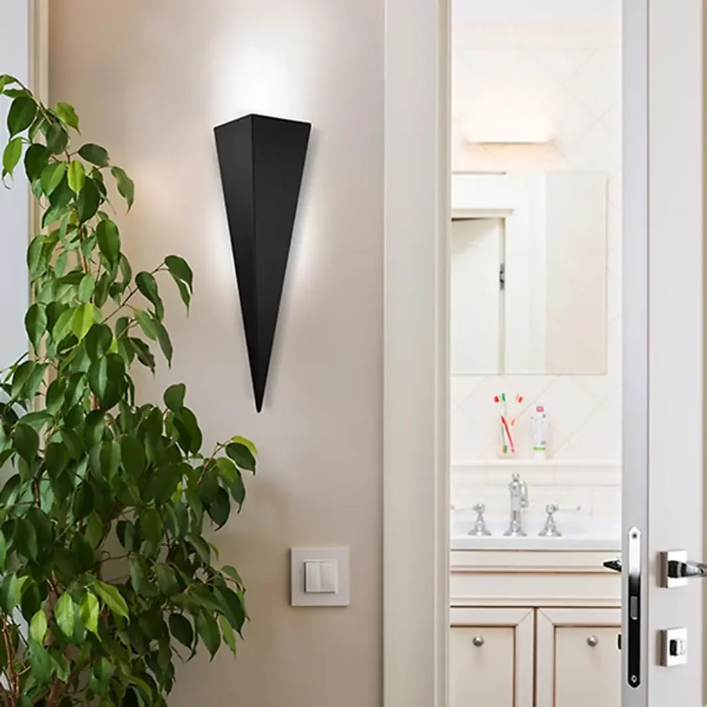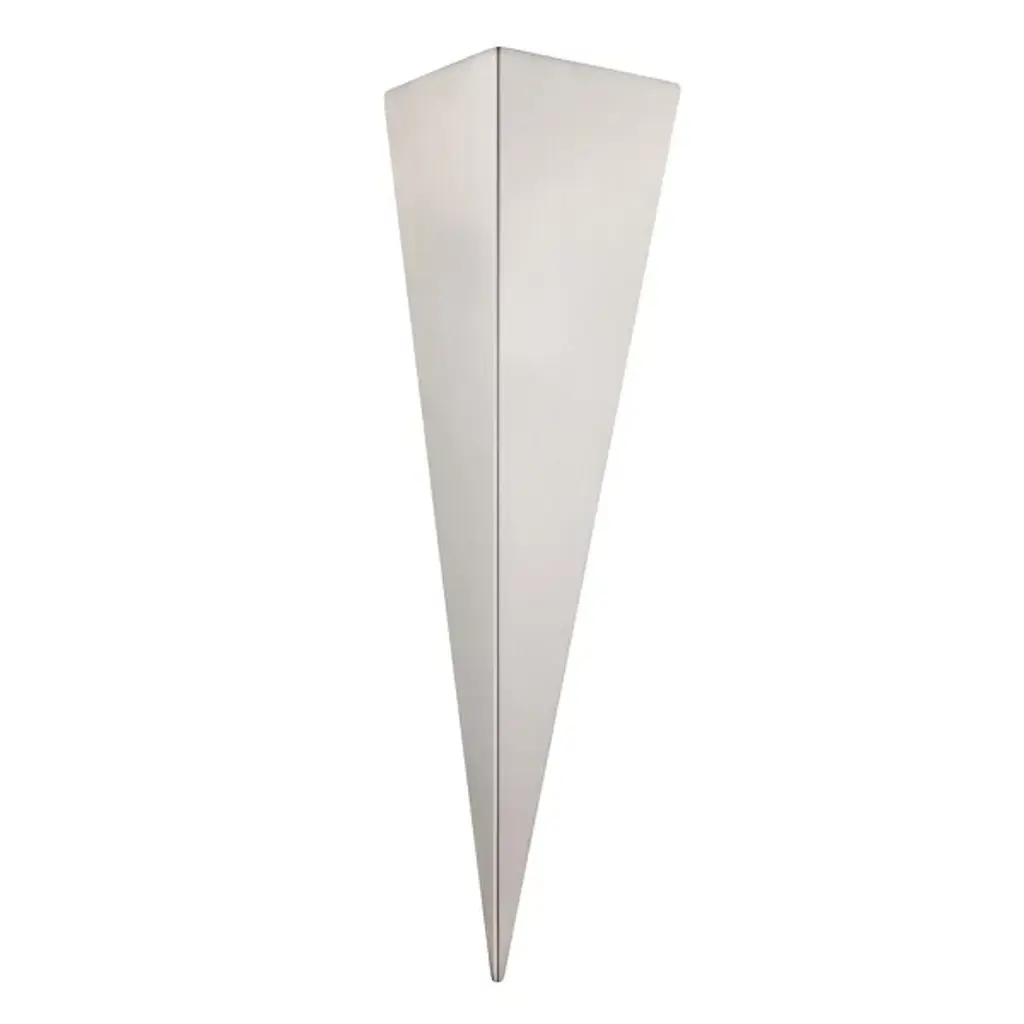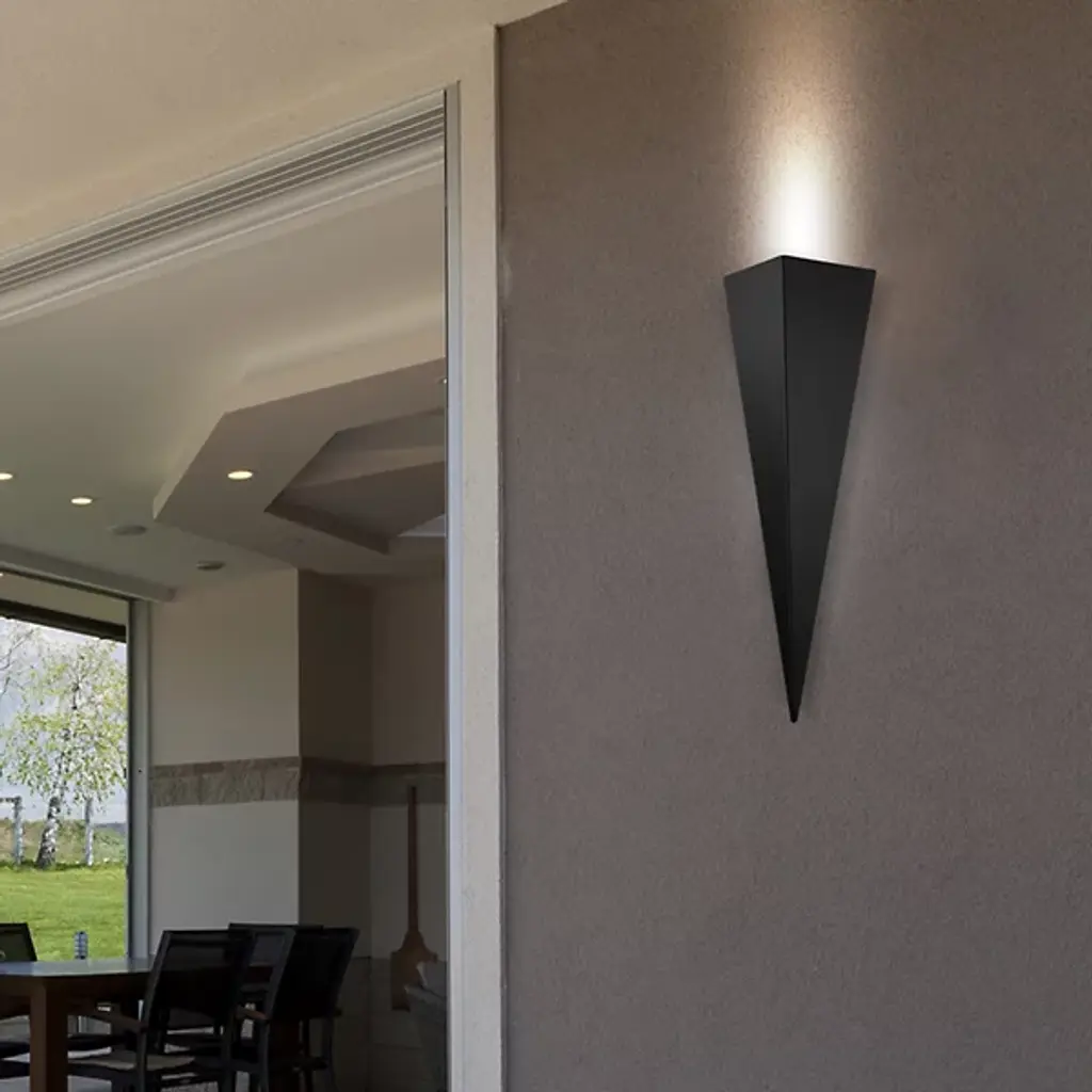 Sharp and architectural defining. Accent the home and mark its key features with the minimalist design of the Trigo Wall Sconce from Eglo. The timelessness of geometry lets the piece make a statement in modern or traditional spaces. It sits flush against the wall with a trim silhouette that makes smart use of space. The stainless-steel form catches the eyes in its sharp point and precise edges. With a torch-like quality, light streams upwards from the structure, creating an ambient glow that glazes the wall and leaves the piece in silhouette.