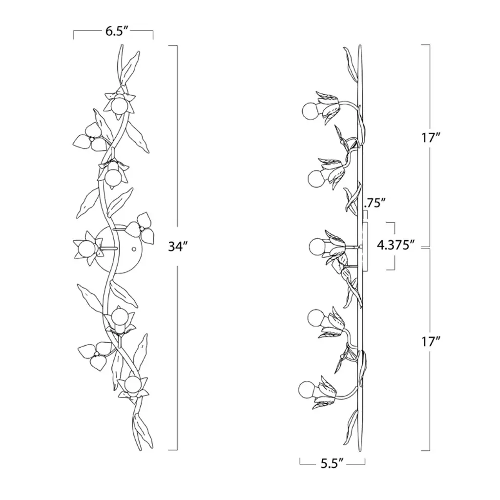 Balancing old-world elegance with rustic charm, each branch of Trillium is cast and gilded in a natural brass finish. Hang above the bathroom vanity for a vintage vibe.