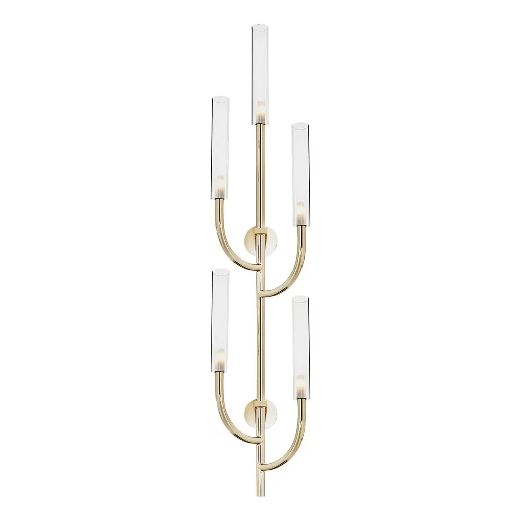 Bring a dose of elegant charm to your modern home with the Trinity LED Wall Sconce from Fredrick Ramond. A square metal backplate mounts a wide band that gently protrudes and holds a series of frosted glass columns. The columns rest at various heights, creating an image of candles burning at different rates. An integrated, energy-efficient LED sits behind the band, shining a warm glow through each column and spreading a relaxing ambiance in the space.