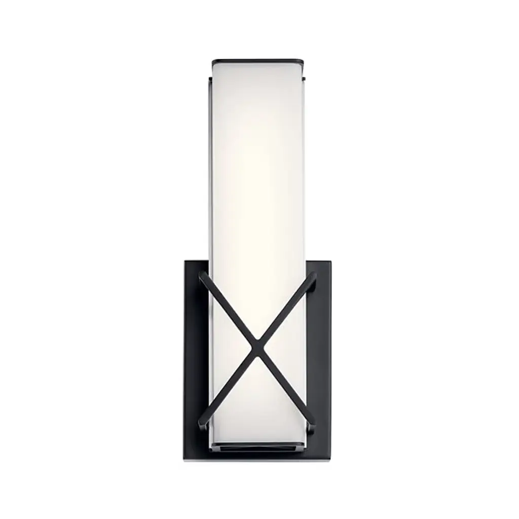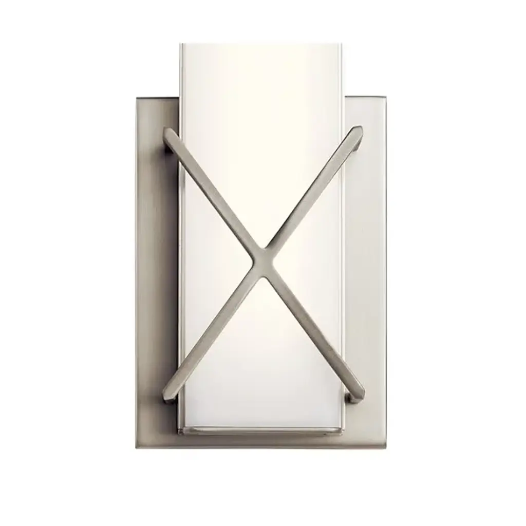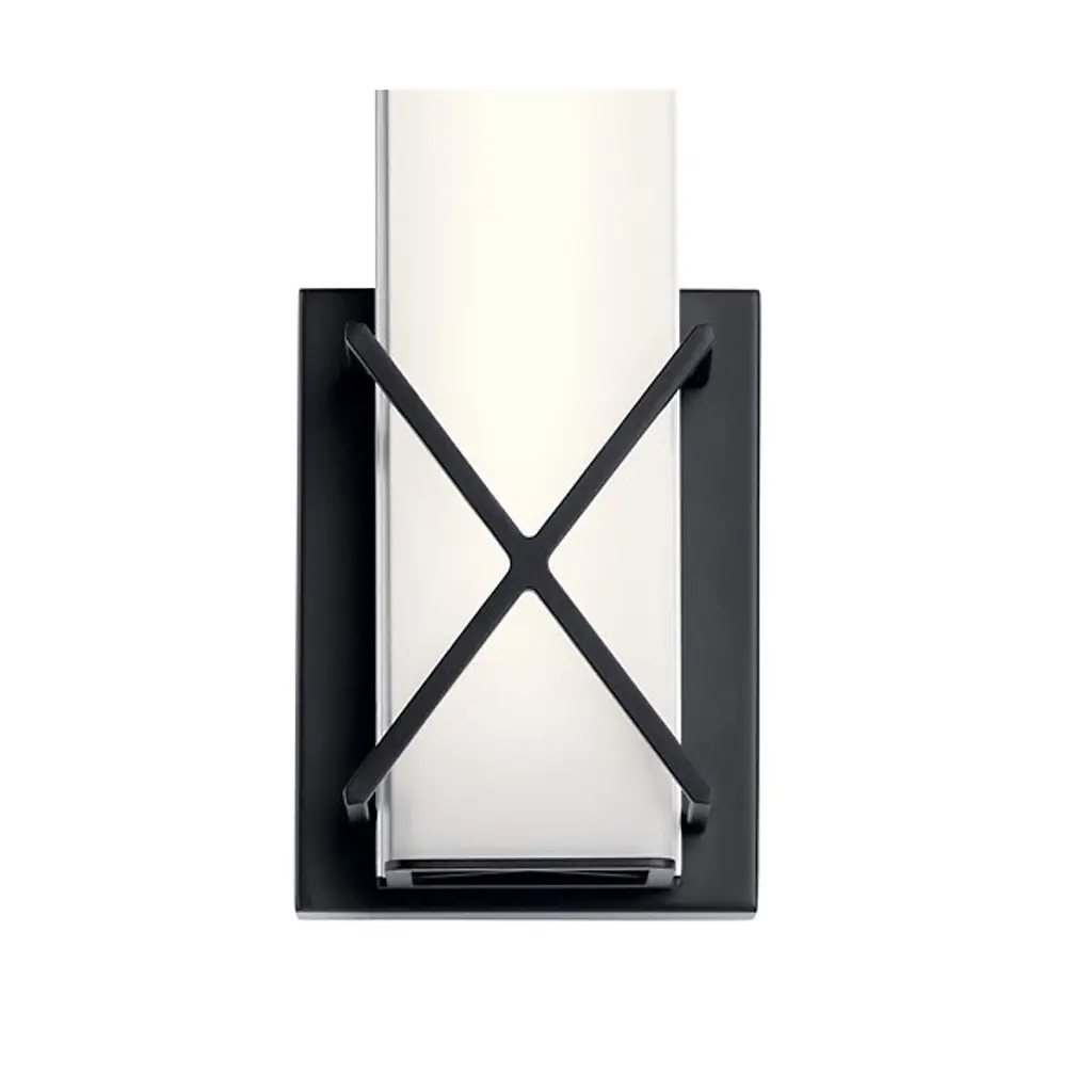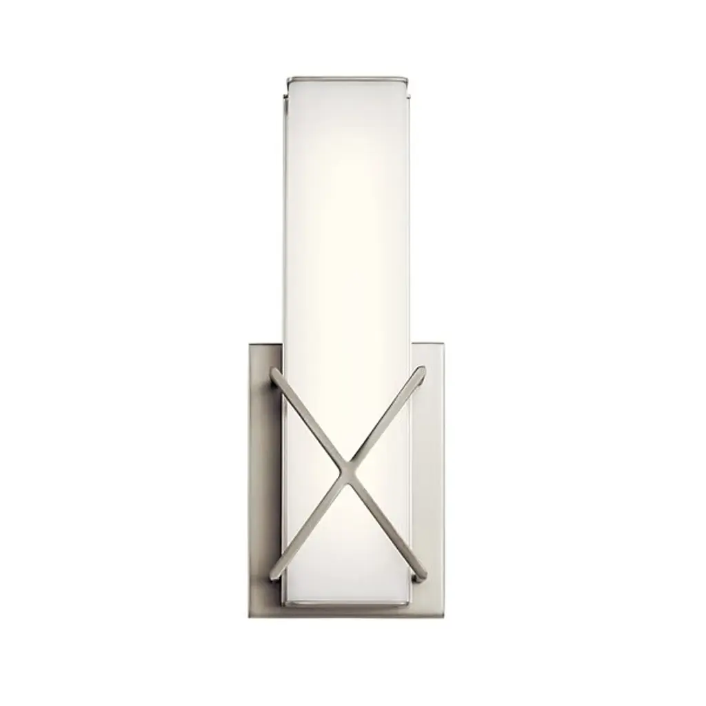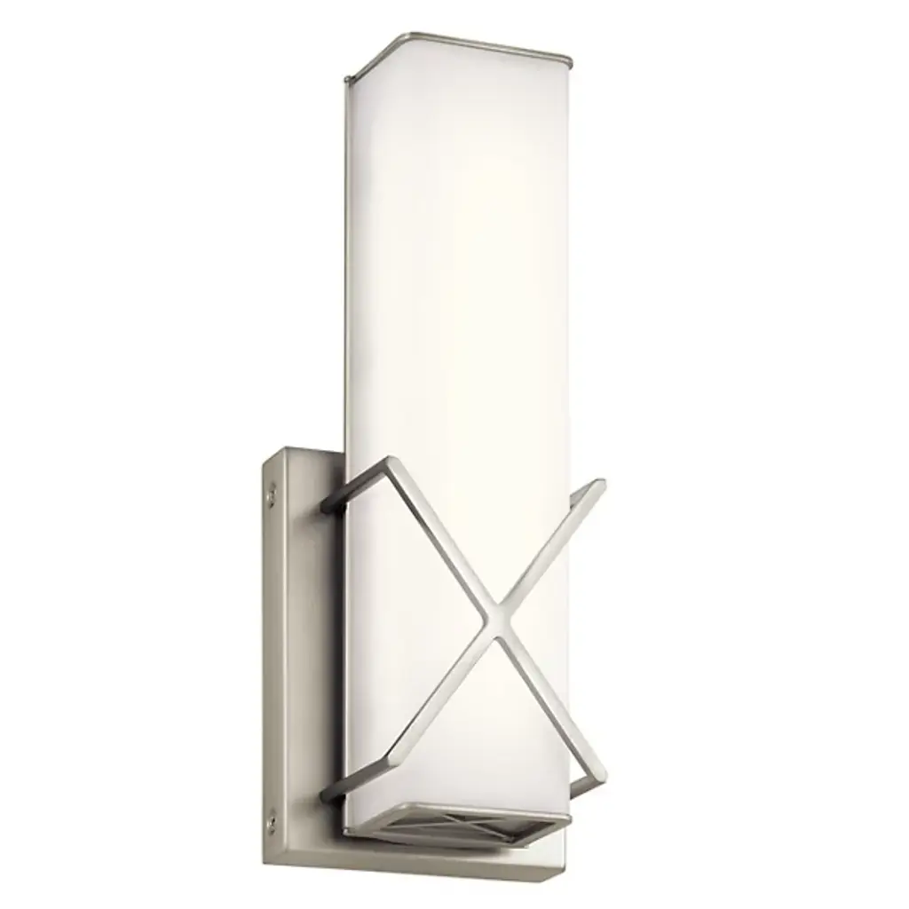 The Trinsic LED Wall Sconce by Kichler conveys a subtle elegance with its tall Satin Etched White glass shade and thin Polished Chrome trimming. The shade’s seamless construction allows for a soft, even ambiance as light simultaneously reflects off the wall plate’s extended cross pattern. This intricate, but low-profile piece works especially well in contemporary bathroom settings, where its light can be as functional as it is pleasant.