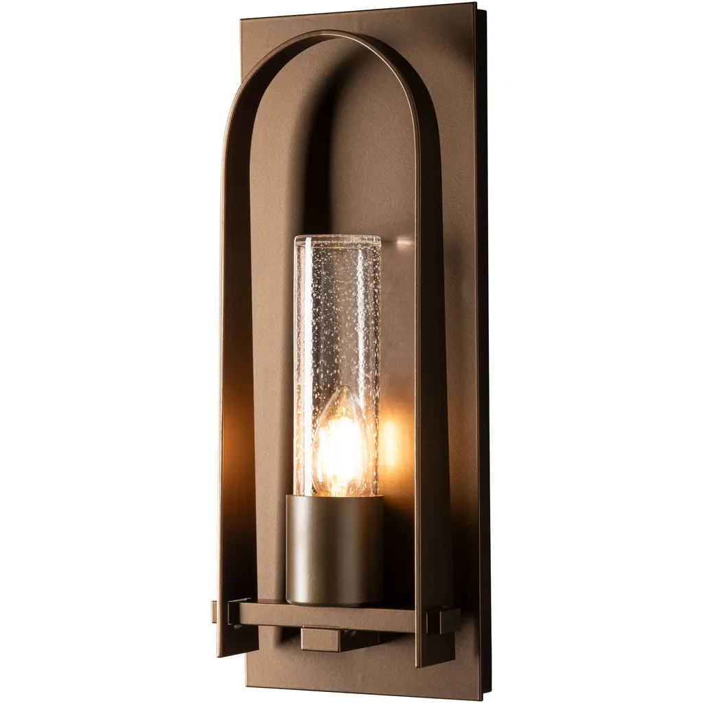 Triomphe 1 Light 16 Inch Coastal Bronze Outdoor Sconce In Seeded Clear, Small