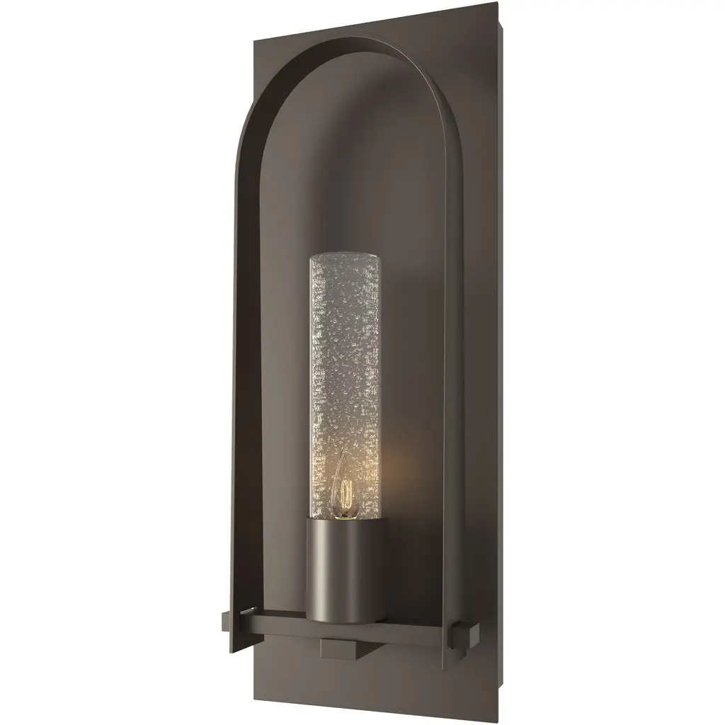 A beautiful, two-tone option wall-mounted fixture, the Triomphe 1-Light Sconce is perfectly suited to a variety of interior settings. Chic and sophisticated, yet with clean lines, this wall sconce shows off its Craftsman tenon details and modern frosted glass tube element. The elegant arch can be created with a contrasting finish for dramatic effect.