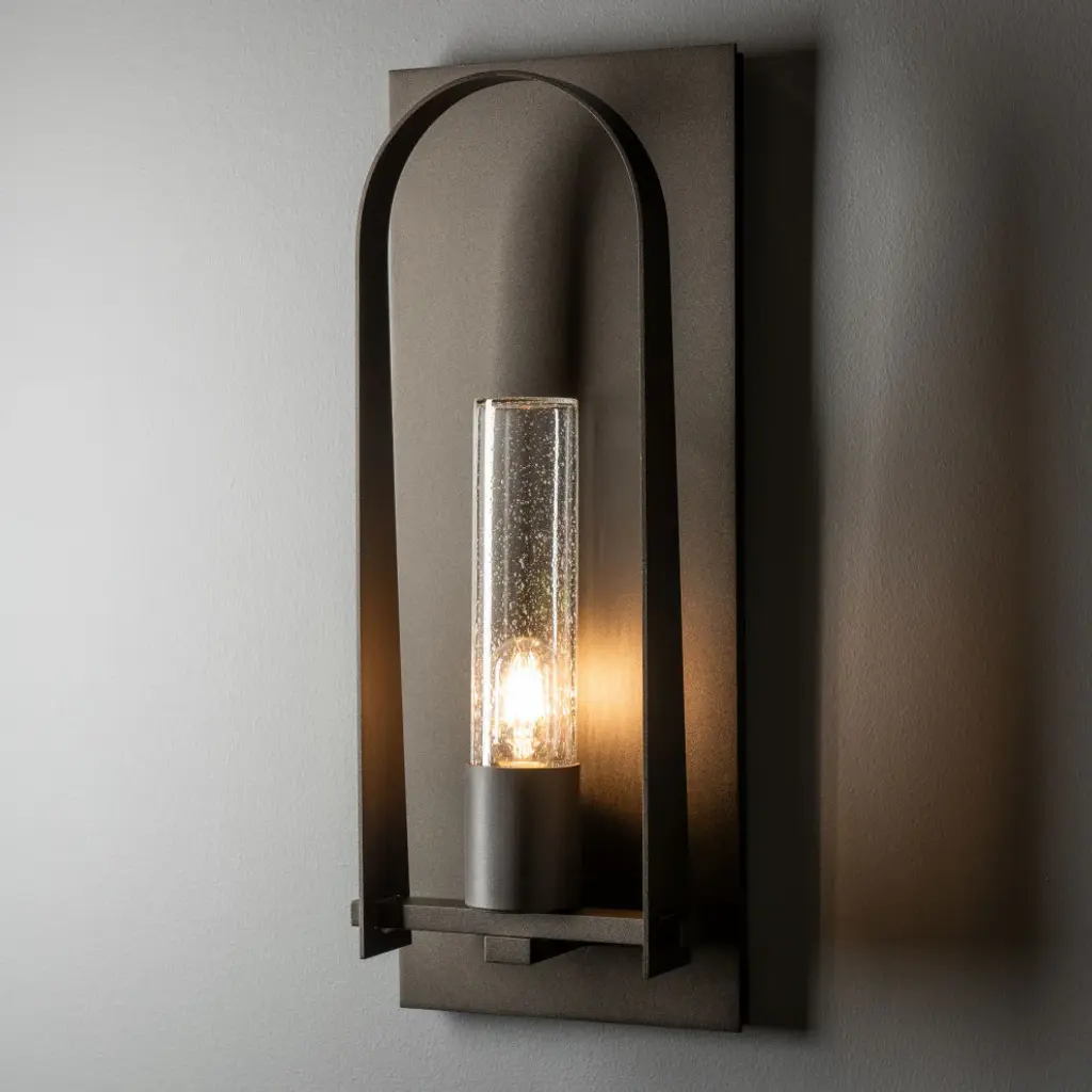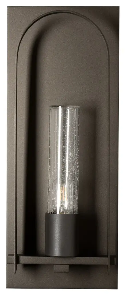 The Triomphe Outdoor Sconce features a classically arched shape and details that reference craftsman tenons according to Designer David Martin. The Triomphe''s elegant clear seeded or opal cylinder glass shade is accented with a graceful, handcrafted arch on an aluminum backplate, and any of our robust AAMA-rated Coastal Outdoor Finishes.Features:Handmade to order in Vermont, USALifetime Limited WarrantyTransitional exterior wall sconce with finish and glass optionsAAMA-ratedRequires 1 BT15 E26 Medium Replaceable Bulb(s) (60 max wattage) (Not Included)