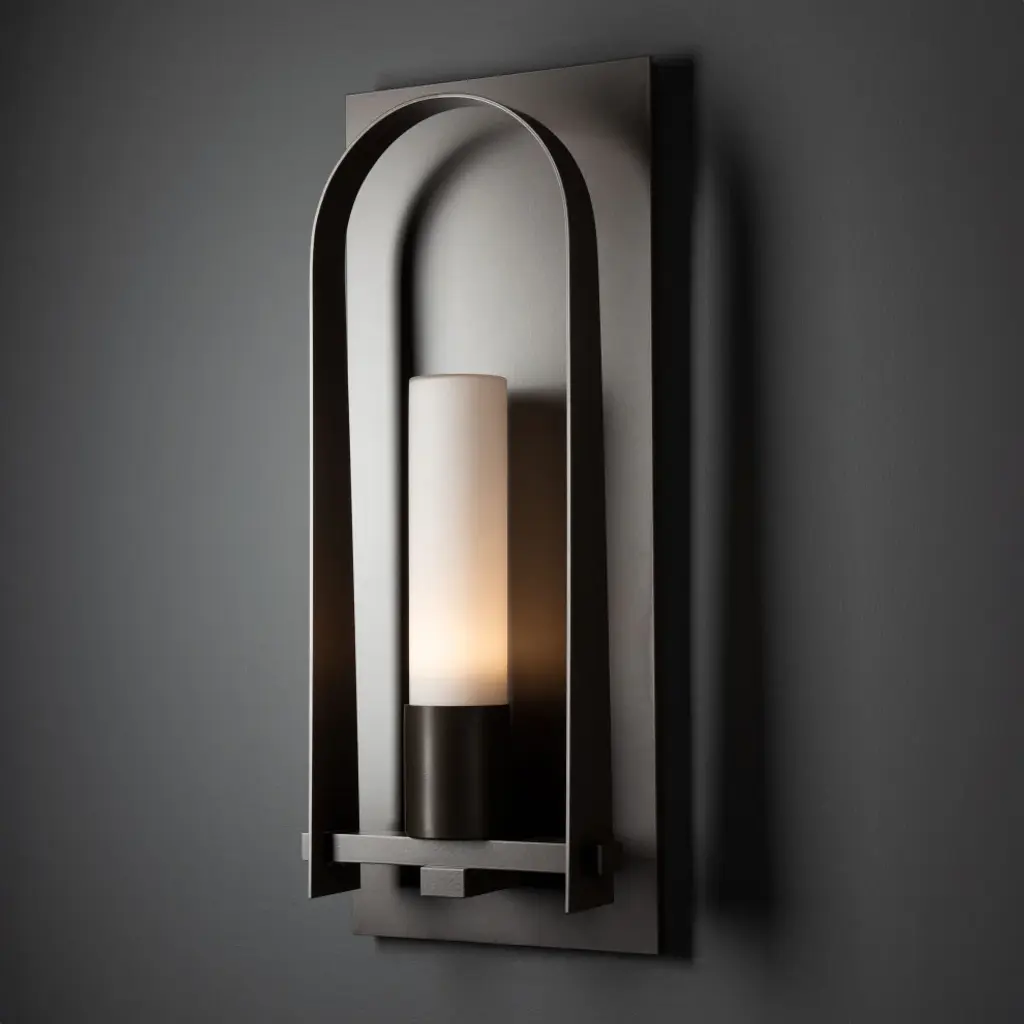 The Triomphe Outdoor Sconce features a classically arched shape and details that reference craftsman tenons according to Designer David Martin. The Triomphe''s elegant clear seeded or opal cylinder glass shade is accented with a graceful, handcrafted arch on an aluminum backplate, and any of our robust AAMA-rated Coastal Outdoor Finishes.Features:Handmade to order in Vermont, USALifetime Limited WarrantyTransitional exterior wall sconce with finish and glass optionsAAMA-ratedRequires 1 A19 E26 Medium Replaceable Bulb(s) (100 max wattage) (Not Included)