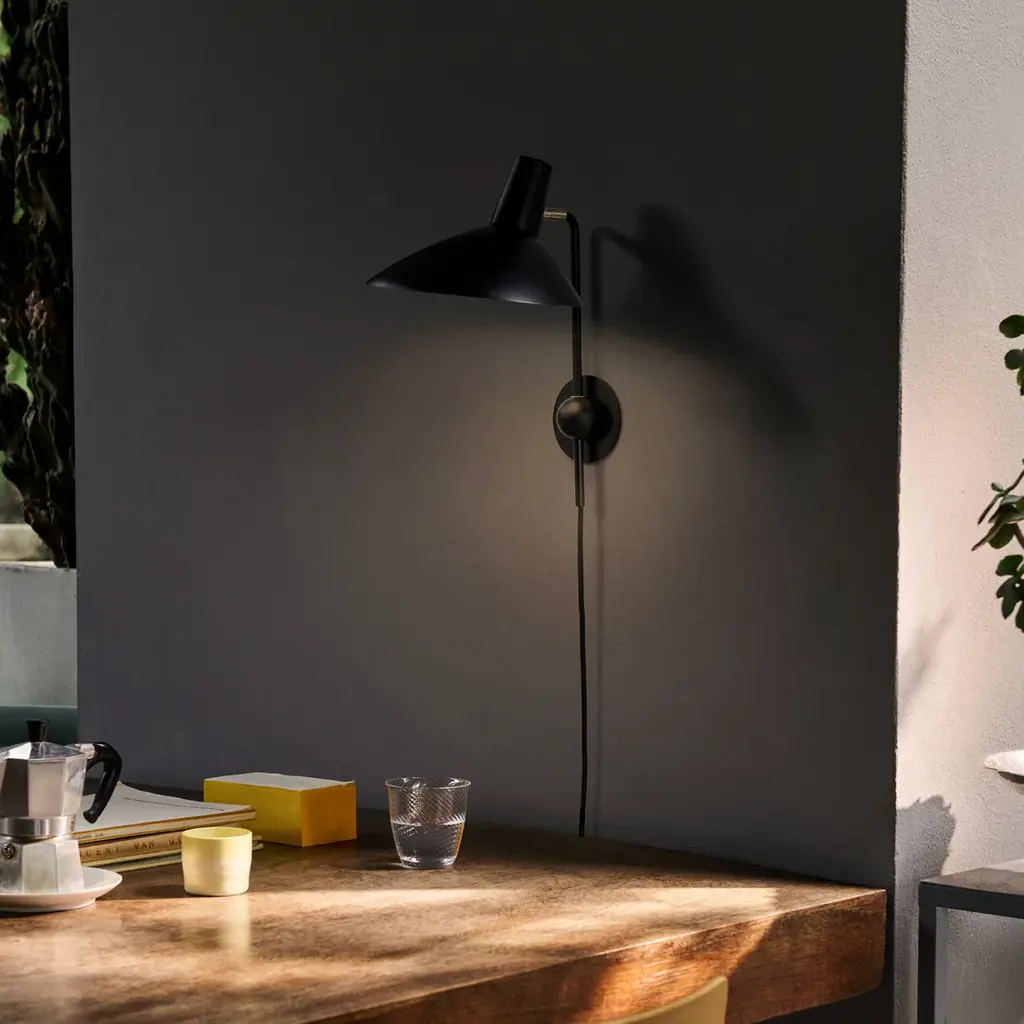 Elevate your space with the exquisite Tripod HM12 Wall Sconce from &tradition. Inspired by Hvidt & Mølgaard's original design, this lacquered aluminum lamp features a solid spherical base and an adjustable shade for a graceful diffusion of light. Its new white and brass colorway adds a touch of timeless luxury to any room. Highlights