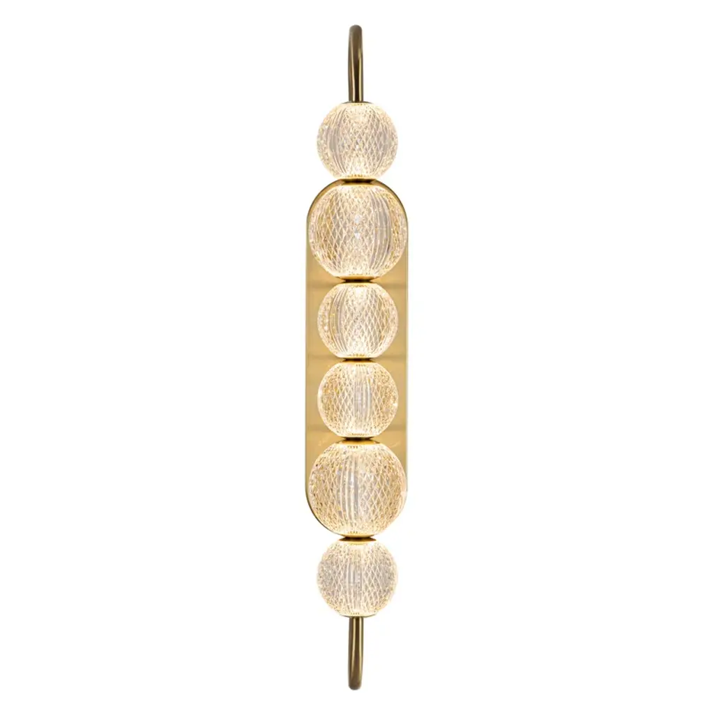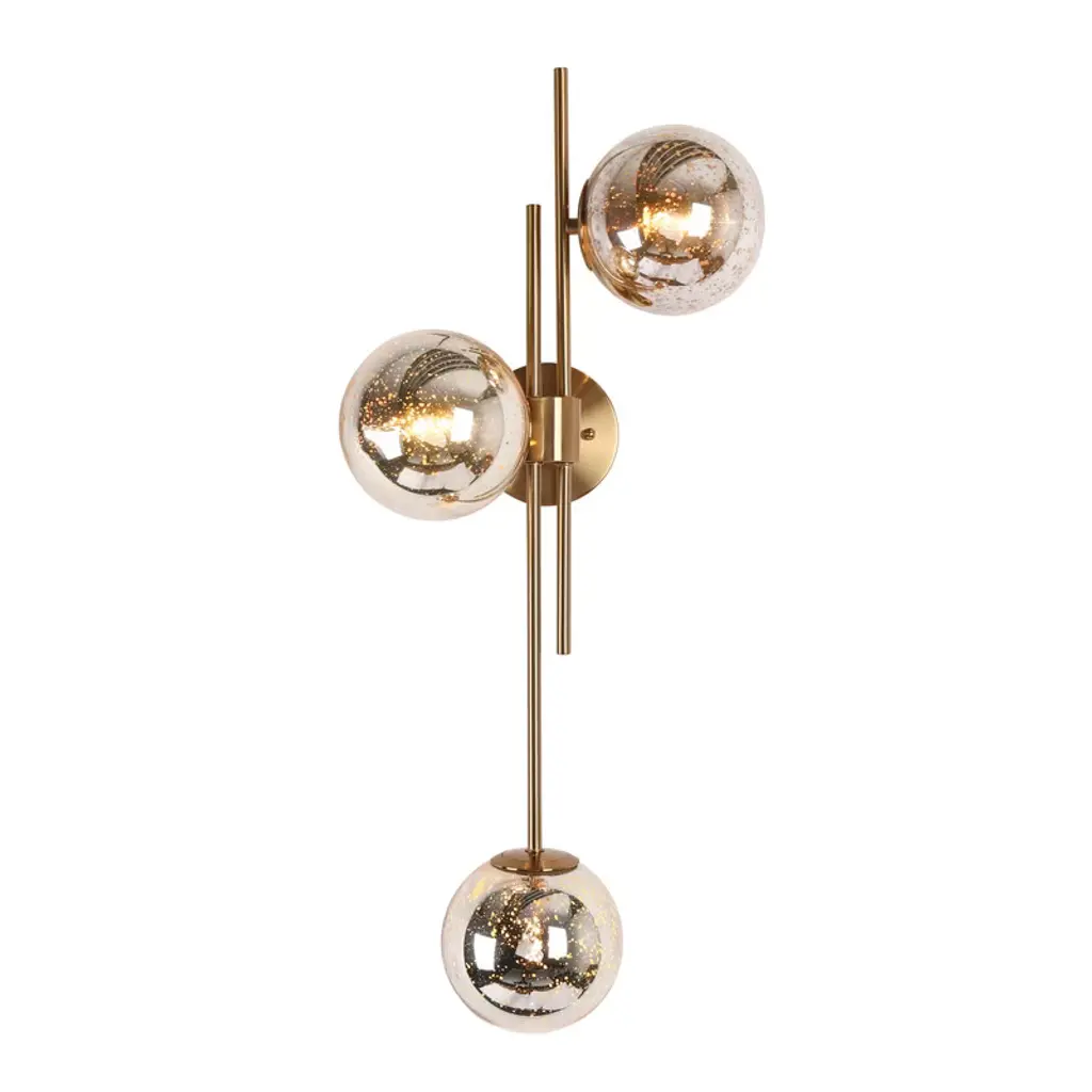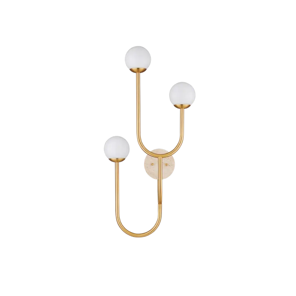 A game of shapes, lights and materials in an ironic and elegant geometric balance that makes this wall sconce particularly versatile.Tris is a metal table lamp in champagne finish. Murano glass spheres and decorative leather cylinders.