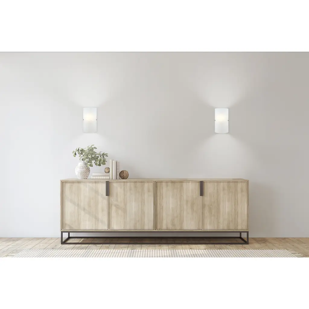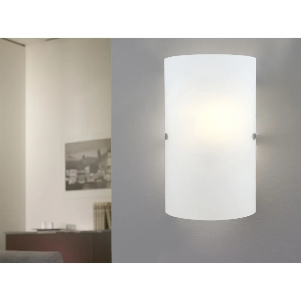 One of EGLO's most versatile fixtures, the Troy 3 1-Light Matte Nickel Wall Sconce offers a clean and simple design that enhances the look of any interior. The minimalist style features smooth, frosted glass complete with two matte nickel finishing screws for a designer touch. This fixture displays beautifully in hallways, bedrooms or foyers and is also approved for use in damp locations such as a bathroom.
