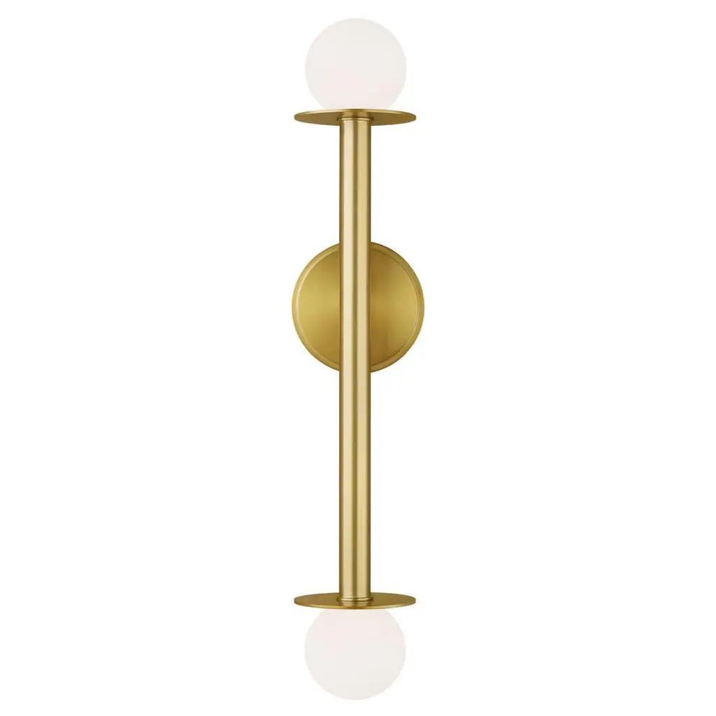 Collection: Arley, Material: Steel, Finish Color: Patina Brass, Width: 5", Height: 21", Length: 5", Depth: 5.5", Backplate Width: 4.75", Backplate Length: 4.75", Lamping Type: Incandescent, Number Of Bulbs: 2, Wattage: 8 Watts, Moisture Rating: Damp Rated, Desc: Channeling light up and down, Arley�s balanced design and circular motifs draw the eye. Two discs adorn either end of this streamlined sconce, creating an interplay of light and metal. Available in a warm Patina Brass or a deep Vintage Pewter finish, Arley is both beautifully fashioned and practical.,
