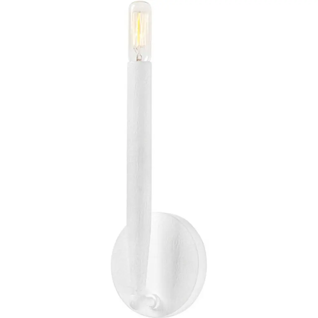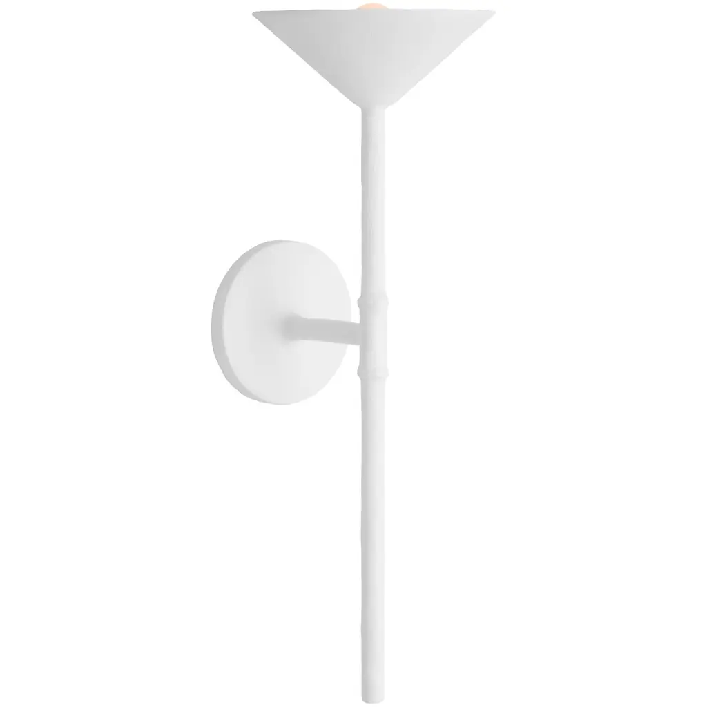 Collection: Cecilia, Material: Aluminum, Finish Color: White, Width: 8", Height: 18.5", Length: 8.5", Depth: 8.5", Lamping Type: Incandescent, Number Of Bulbs: 1, Wattage: 60 Watts, Dimmable: Yes, Moisture Rating: Damp Rated, Desc: Cecilia is smooth, sleek and effortlessly stylish. This beautifully hand-crafted design gives a recognizable torch-shape candle a luxe upgrade in Vintage Gold Leaf or White Gesso. The round chandelier in three-, six- or nine-light options casts a circle of gorgeous light while the single-light sconce bounces off the wall above. Torch shaped design Available as a wall sconce or chandelier Available in Vintage Gold Leaf or White Gesso finishes.,