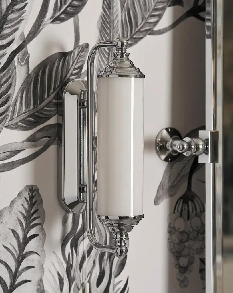 TUBE is a homage to the American design of the Thirties, this wall lamp gives an inimitable retro taste to very elegant bathrooms. The diffuser is made of satin glass, the metal structure is in brass.FeaturesMaterials: brass | frosted glassFinishes: chrome | light gold | polished nickelClassification: IP20*Power: MAX 40 WATTWeight: 0.93 Kg