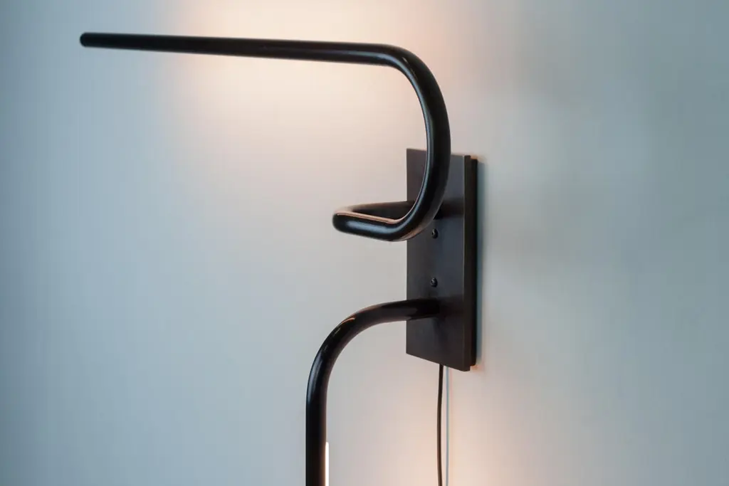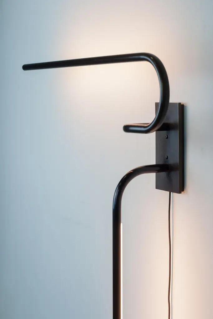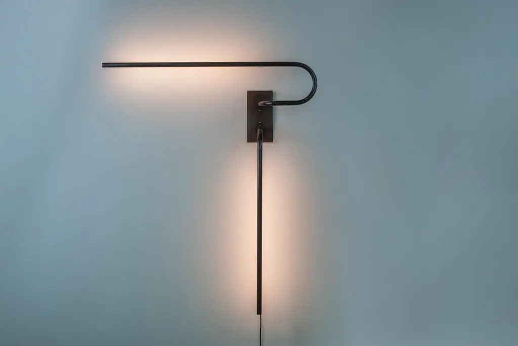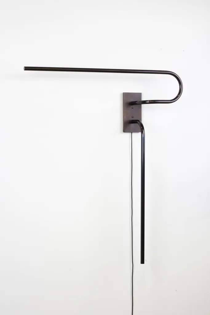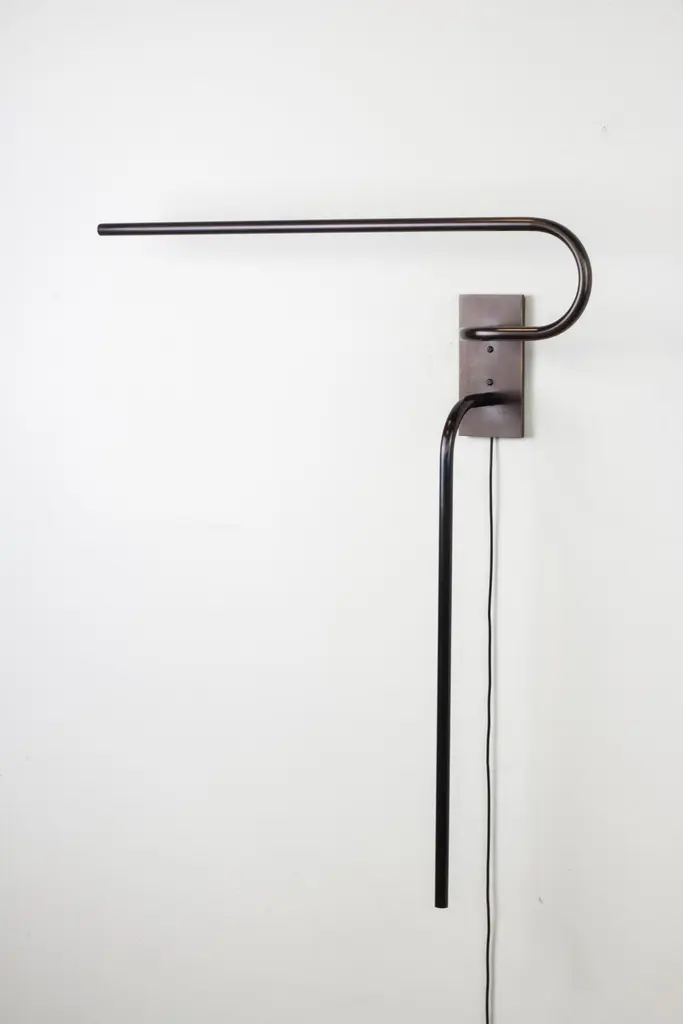 Tube sconce by Gentner DesignDimensions: D 40.6 x W 15 x H 71 cmMaterials: darkened brassAvailable in darkened brass and tarnished brass.All our lamps can be wired according to each country. If sold to the USA it will be wired for the USA for instance.Inspired by the art of Sumi-e, Japanese black ink drawing, the lamp flows as if stroked in one consecutive line. The dimmable LED wall sconce is available in two finishes, darkened brass or tarnished brass, all handcrafted in Chicago.Gentner DesignRooted in a language of sculpture, character defining details, and world renowned craftsmanship, the work is found at the crossroads of design and art.Established in 2011, the namesake furniture label is a rare combination of aesthetic dexterity and mastery of craft resulting in furniture and objects that are expressive, formal, and transcend materiality.The collection is based in metal and incorporates only natural materials such as leather, wood, and glass in unique ways, challenging our assumptions.Christopher GentnerChristopher Gentner, with a BFA in metalsmithing from the Cleveland Institute of Art and apprenticeships under sculptors and jewelers, together with dedication to craft, quickly developed his reputation nationally as a foremost authority of metal fabrication and furniture.One of his crowning achievements was the re-creation and fabrication of the Frank Lloyd Wright Robie House gates.These unique experiences are the foundation of his design philosophy which he employs in his own line of furniture, lighting, and objects.