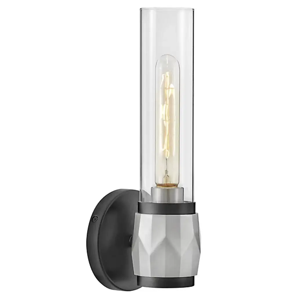 A statement of bold modern style. Take your decorative lighting to another level with the tubular Tubo Wall Sconce from Matteo lighting. The sconce’s rectangular backplate naturally slots into the architectural lines of the modern home. The sleek metal backplates serve as a background for the radiant lighting elements in front. A cylindrical body at the center draws your eyes with a contrasting finish. The eyes then move from side to side as they follow the crisp, reflective notes of the clear glass tubes. Fit the piece with tubular bulbs for a rich, textured ambient light spread.