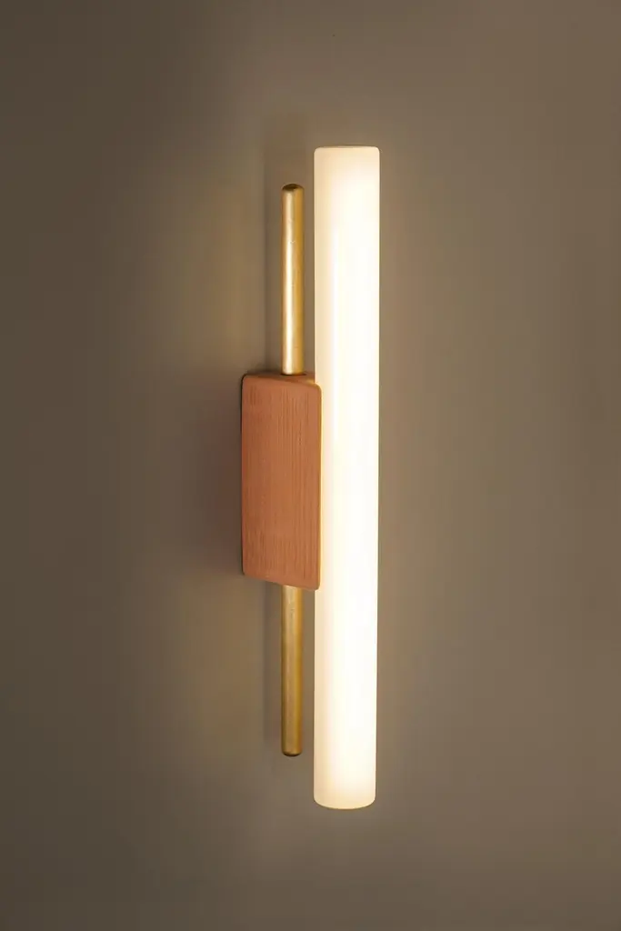 Tubus 30 wall light by ContainDimensions: D 3.2 x W 30 x H 7.5cm Materials: brass and 3D printed PLA structure.Available in different finishes.All our lamps can be wired according to each country. If sold to the USA it will be wired for the USA for instance.“You are where you live” So, we decided to live in Mallorca. We are Mauricio Obarrio and Juan Peralta and CONTAIN is our lighting and furniture design studio.This collection is the result of the collaboration between our studio, local artisans and the industrial sector; where creativity and simplicity creates a unique synergy and generates a narrative between the materials used and the pieces created. Our mission is to deliver artisan crafted, highly engineered, sophisticated yet simple lighting design solutions. Our studio's inspiration is fueled by an obsession with natural materials such as Brass, Glass, and Hardwoods along with a love for artisan craftsmanship.