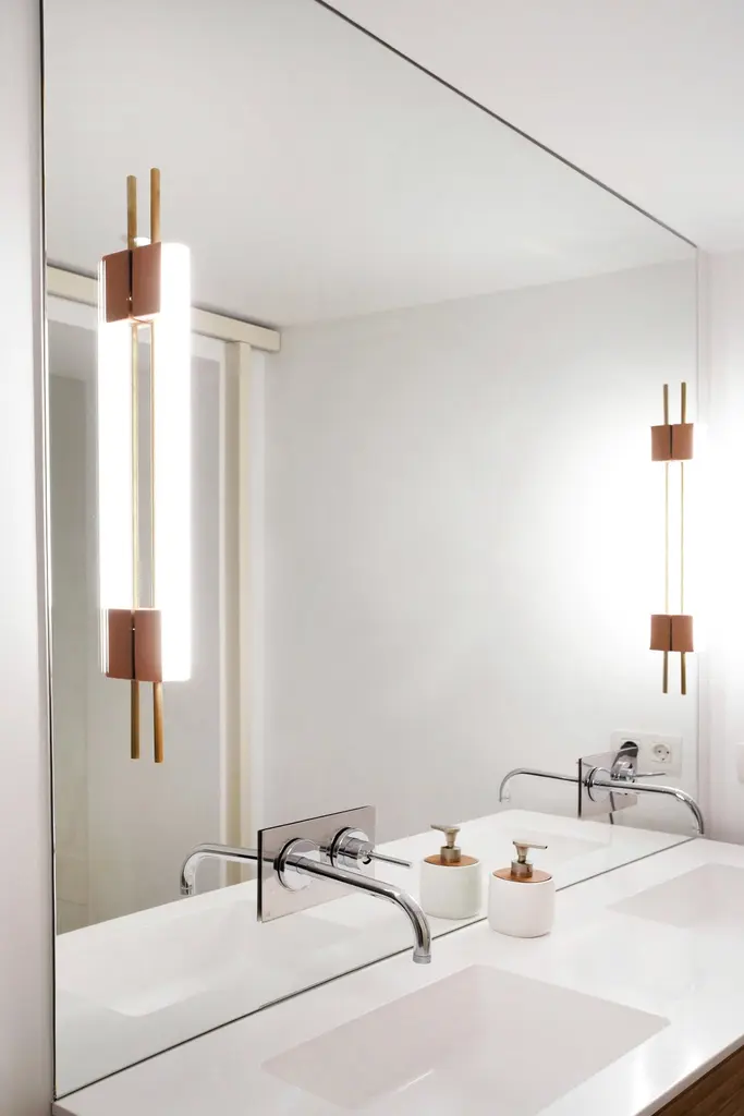 Tubus 70 wall light by Contain.Dimensions: D 3.2 x W 70 x H 7.5 cm.Materials: brass and 3D printed PLA structure.Available in different finishes. All our lamps can be wired according to each country. If sold to the USA it will be wired for the USA for instance.“You are where you live” So, we decided to live in Mallorca. We are Mauricio Obarrio and Juan Peralta and CONTAIN is our lighting and furniture design studio.This collection is the result of the collaboration between our studio, local artisans and the industrial sector; where creativity and simplicity creates a unique synergy and generates a narrative between the materials used and the pieces created. Our mission is to deliver artisan crafted, highly engineered, sophisticated yet simple lighting design solutions. Our studio's inspiration is fueled by an obsession with natural materials such as Brass, Glass, and Hardwoods along with a love for artisan craftsmanship.
