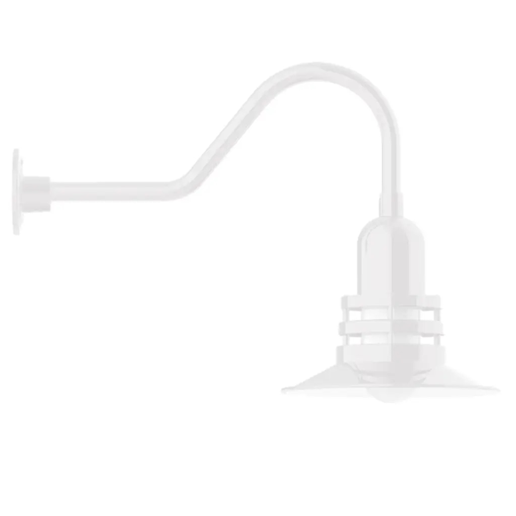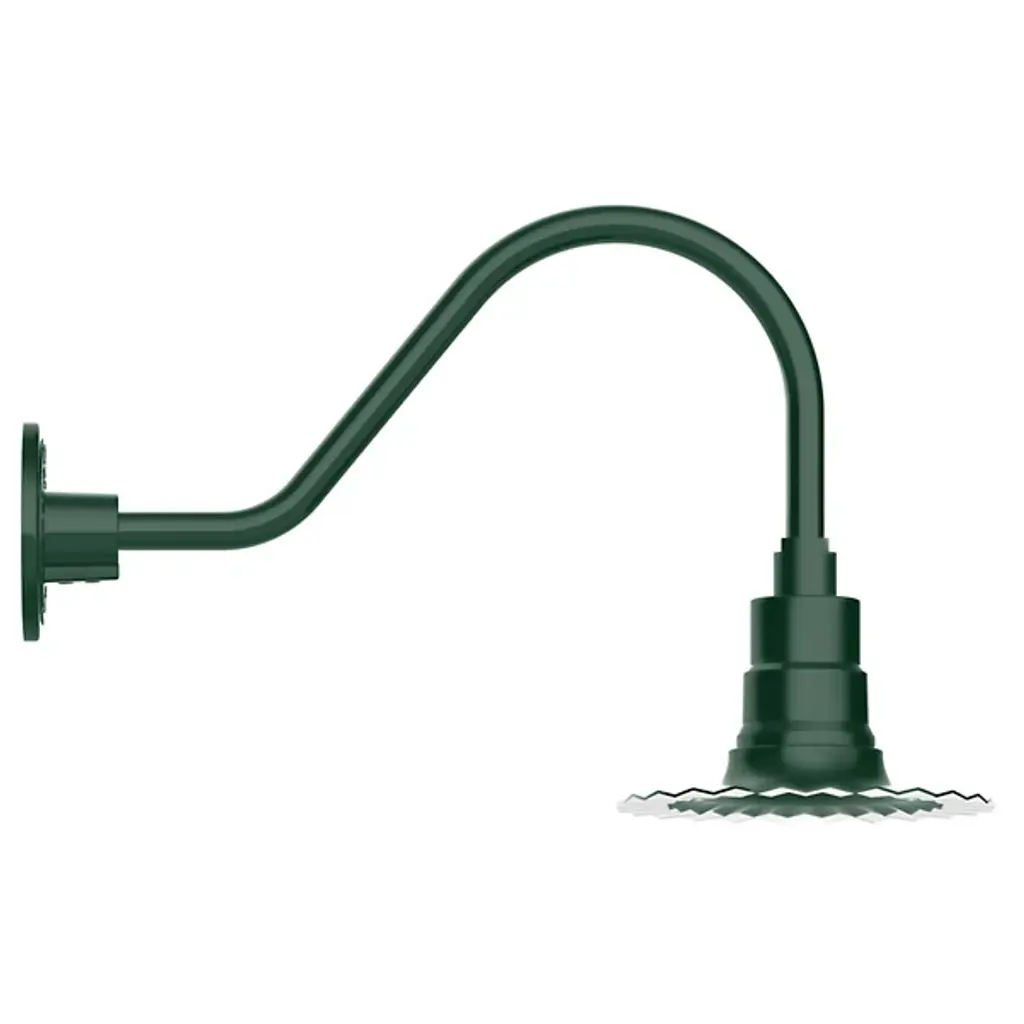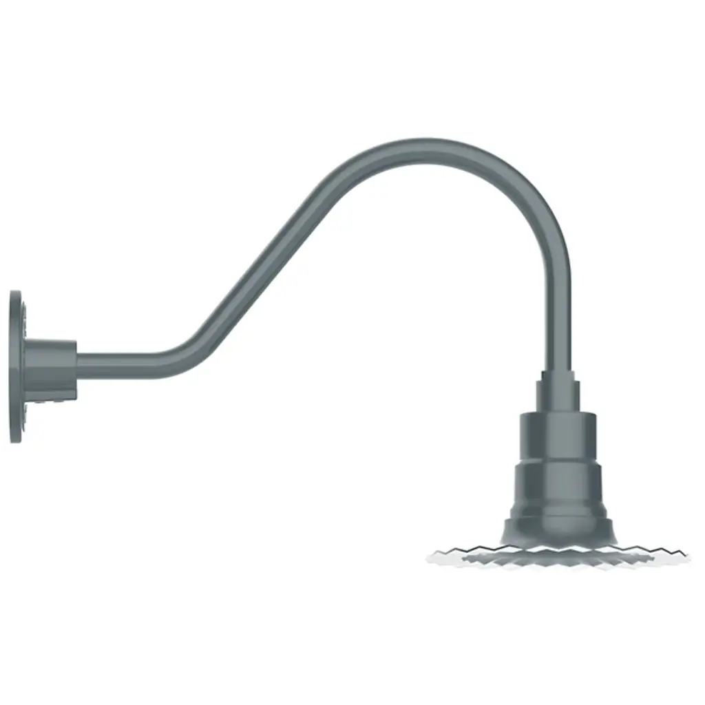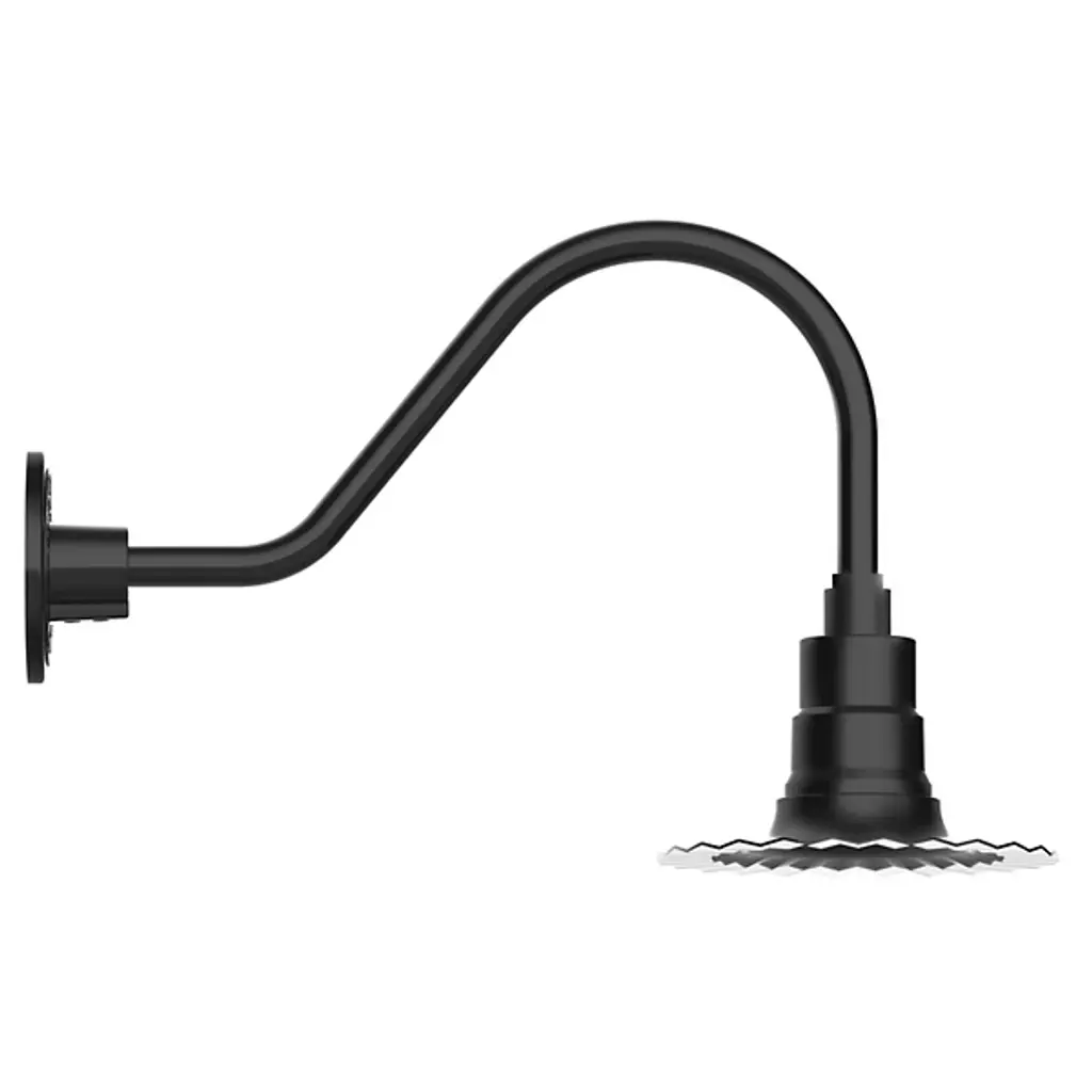 The Tucker Outdoor Gooseneck Wall Sconce from Alder & Ore pushes away water while pushing out a clean, lively light. This industrial-inspired piece strikes the right balance between form and function. The backplate says practicality as it secures to the wall without much space needed. To give the accompanying wall an enhancing glow, the piece sends out a long arm highlighted by its beautiful gooseneck silhouette. Capping of the gooseneck arm, a stepped lamp holder gives the lone bulb a focused look. The shade produces angular, radial details so that water slides down its crevices. The shade also enhances the radiant qualities of the wall-glazing down glow.