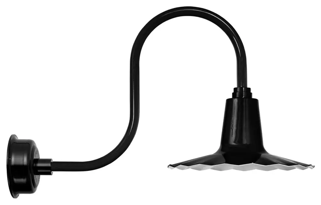 The Tucker Outdoor Wall Sconce by Alder & Ore is a small yet stylish way to add a directed layer of downlight to a variety of spaces. Anchored by a round wall plate, a gracefully curved arm supports a metal shade that was spun from heavy-duty aluminum and has a fun, flared edge. With a polyester powder-coated exterior that retains color and resists scratching, the inside of this wall sconce features its own powder-coated finish that helps provide maximum light output to surroundings, making this an ideal choice for porches, patios, outside garages, and more.