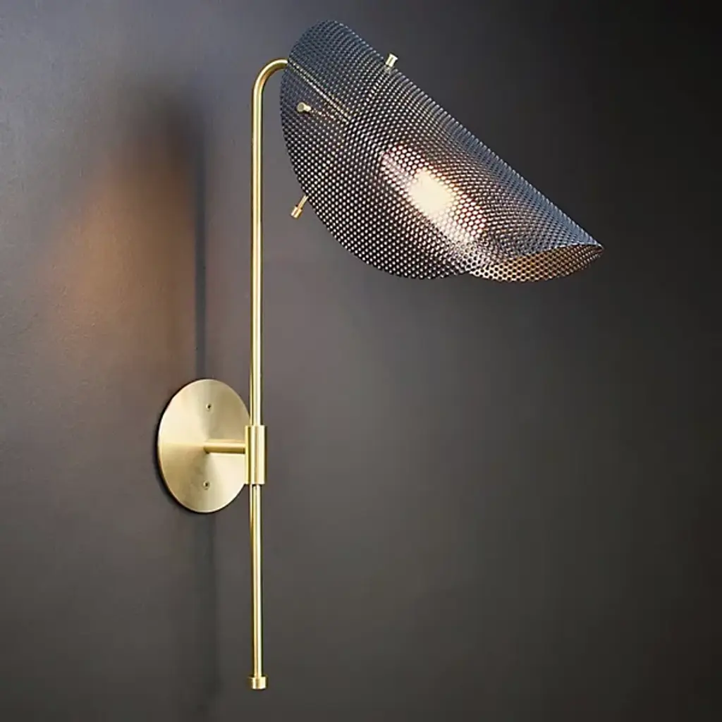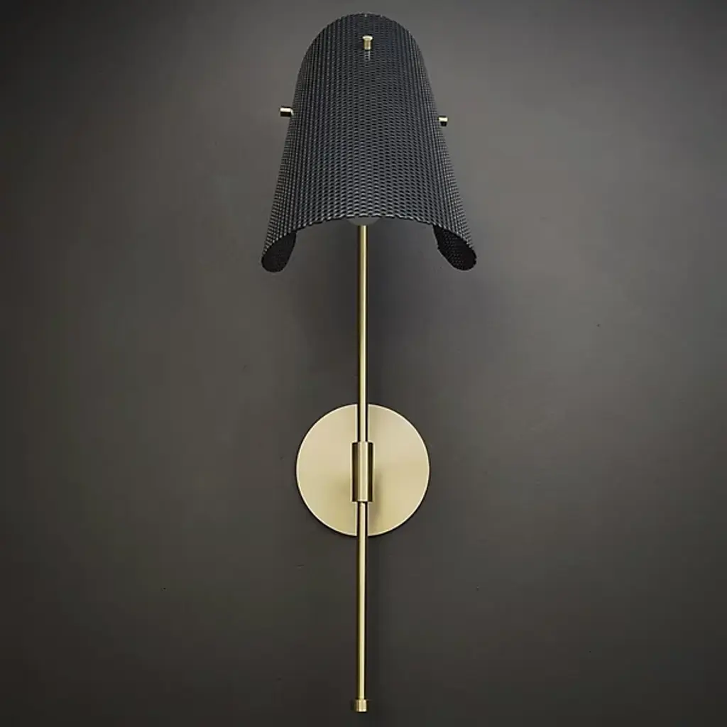 Give your living space a chic appearance with the Tulle Wall Sconce by Blueprint Lighting. With the Tulle family of light fixtures, artisan Kelly Aaron wished to pay tribute to Hungarian craftsman and French national Mathieu Mategot. Mategot championed a “Rigitulle” material in the 20th century, and Mategot’s motifs live on through Aaron’s unwavering design discipline. A bonnet-like shade boasts a metal mesh composition that draws in your eye. This shade perches at the end of an ultra-slender rod of fine brass. An incandescent bulb within this shade illuminates your home while remaining in place courtesy of a backplate secured to your wall.