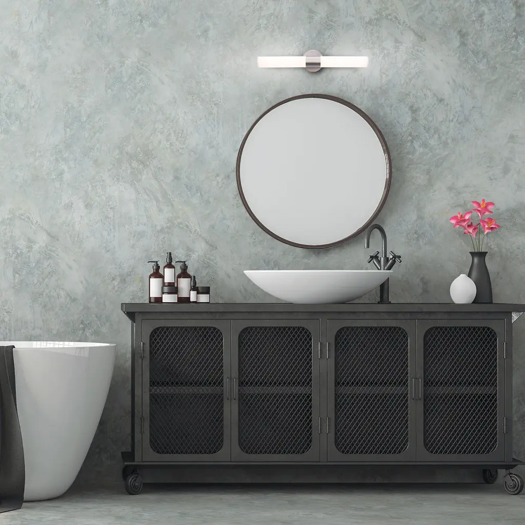 Soft illumination diffused through translucent acrylic. Turbo is the perfect choice for a bathroom vanity or hall to add a clean, modern look and feel. Available as a wall sconce and bathroom vanity light.