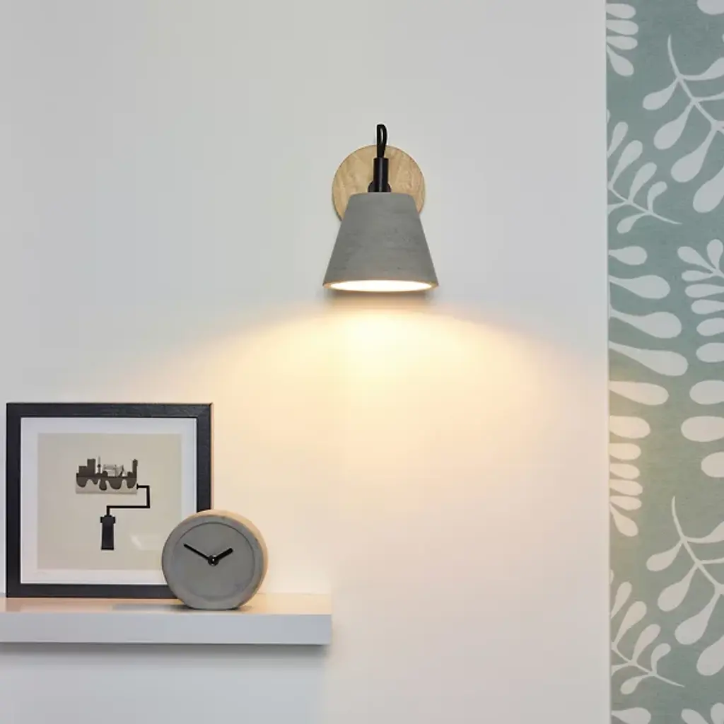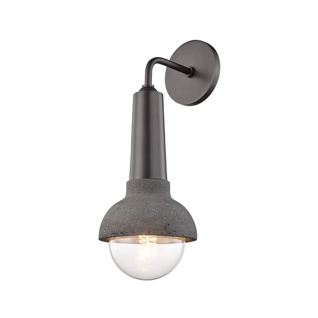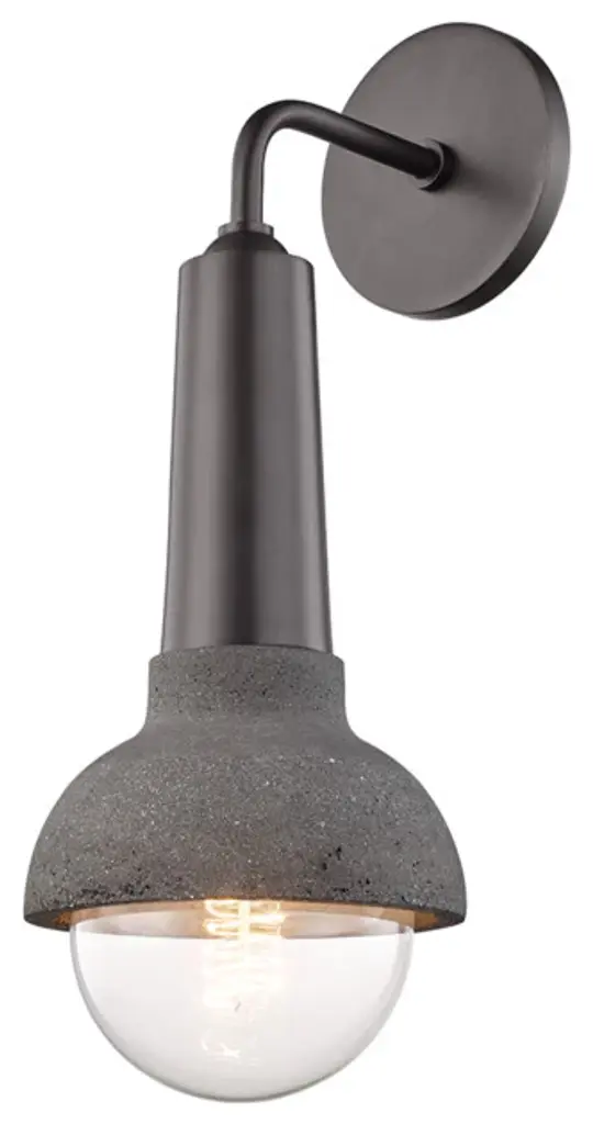 Presented by Renwil, the transitional luminary takes on a luxury designer quality with the Turtle Bay Wall Sconce. Coupling traditional features with modern materials, this light contributes to a calming atmosphere. A circular wooden mounting plate is paired with textured black steel metalwork and a tapered concrete shade, all coming together effortlessly to strike the balance of organic and bold design.