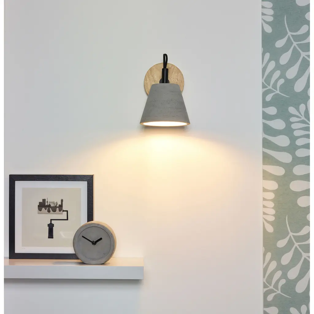 The contemporary bedroom takes on a luxury designer quality with this wall sconce. Coupling traditional features with modern materials, this light contributes to a calming atmosphere. Rubber wood, textured black steel and concrete come together effortlessly to strike the balance of organic and bold design.