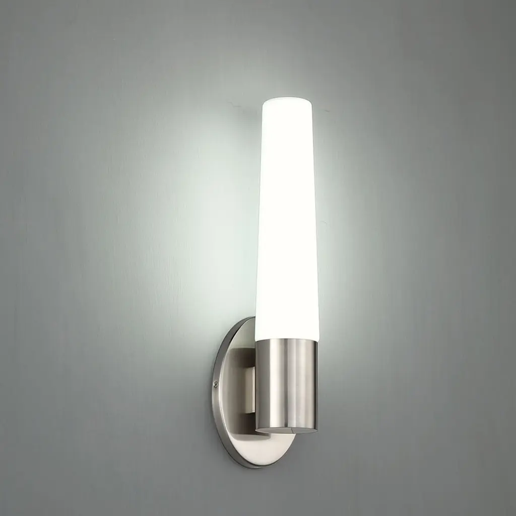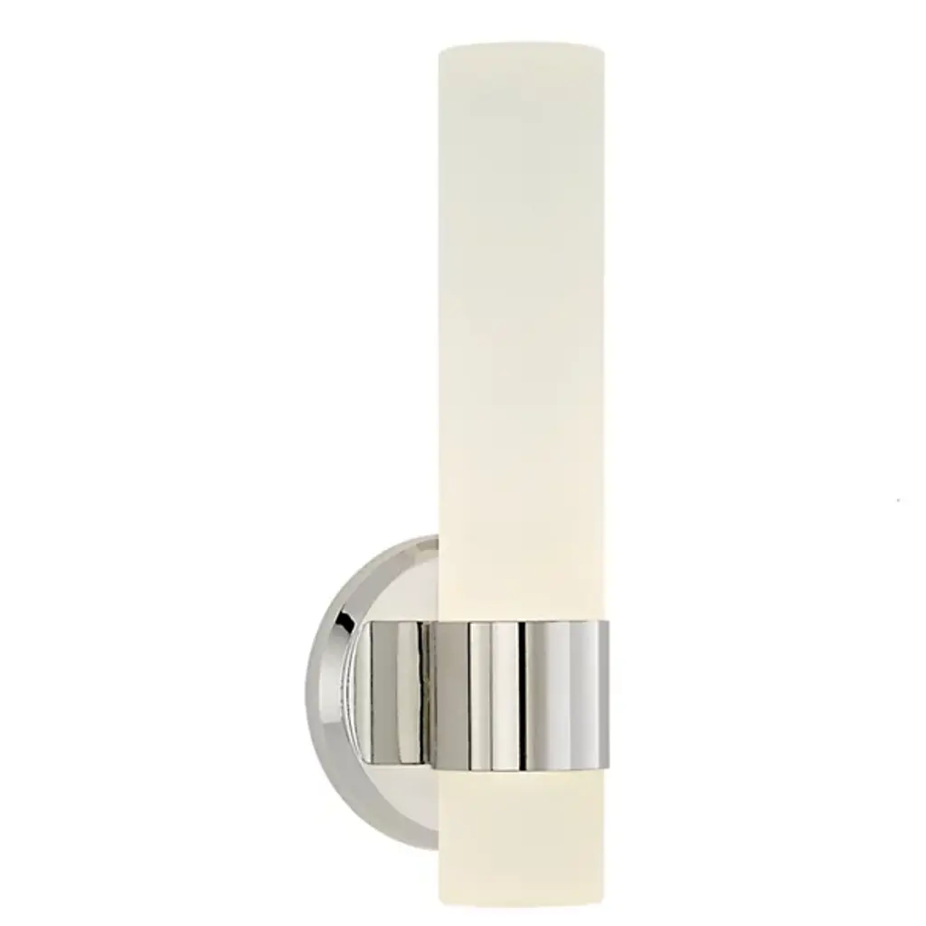Whether you mount it as a vanity light or in a hotel foyer, Tusk brings superb LED task lighting into every room. Expertly crafted from mouth-blown etched opal glass, the elegantly tapered diffuser spreads the light evenly for timeless quality illumination. Available in four finishes— polished chrome, brushed nickel, satin brass and versatile black.