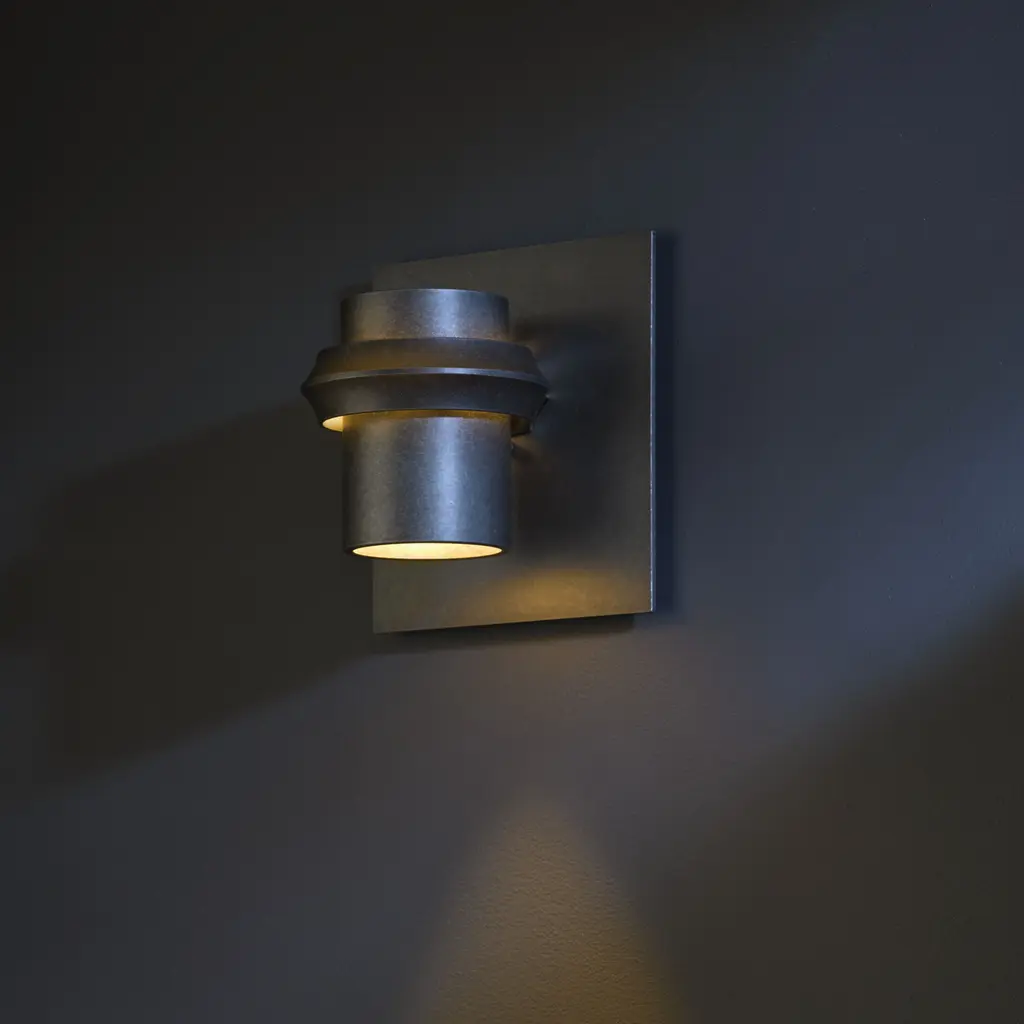The classic contemporary design of the Twilight Dark Sky Friendly Outdoor Sconce makes a strong statement in its simplicity. A gentle glow emanates from the metal band that encircles the metal shade, giving off a twilight illumination into the night.