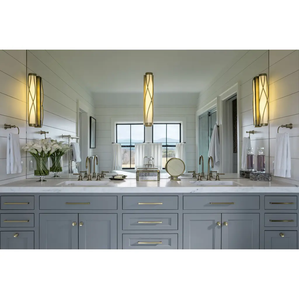 A semi-weave of steel "twine" crisscrosses the glass tube. With the option of mounting vertically or horizontally, the design is fun, but the craftsmanship is serious. The artisans here at our Vermont forge have worked the steel to exacting standards.