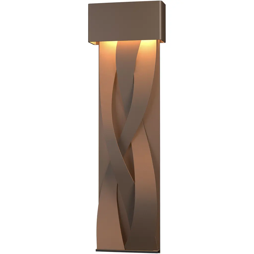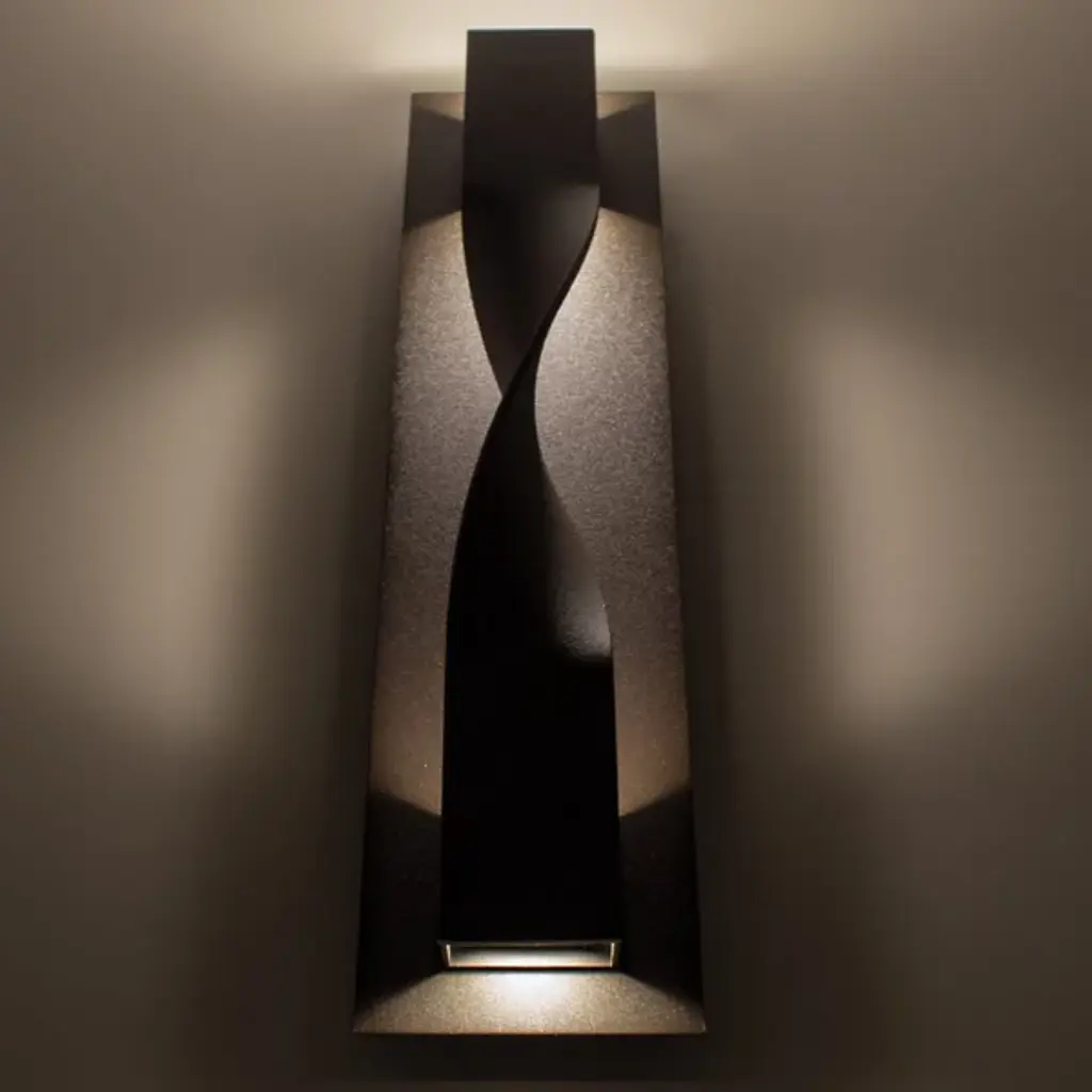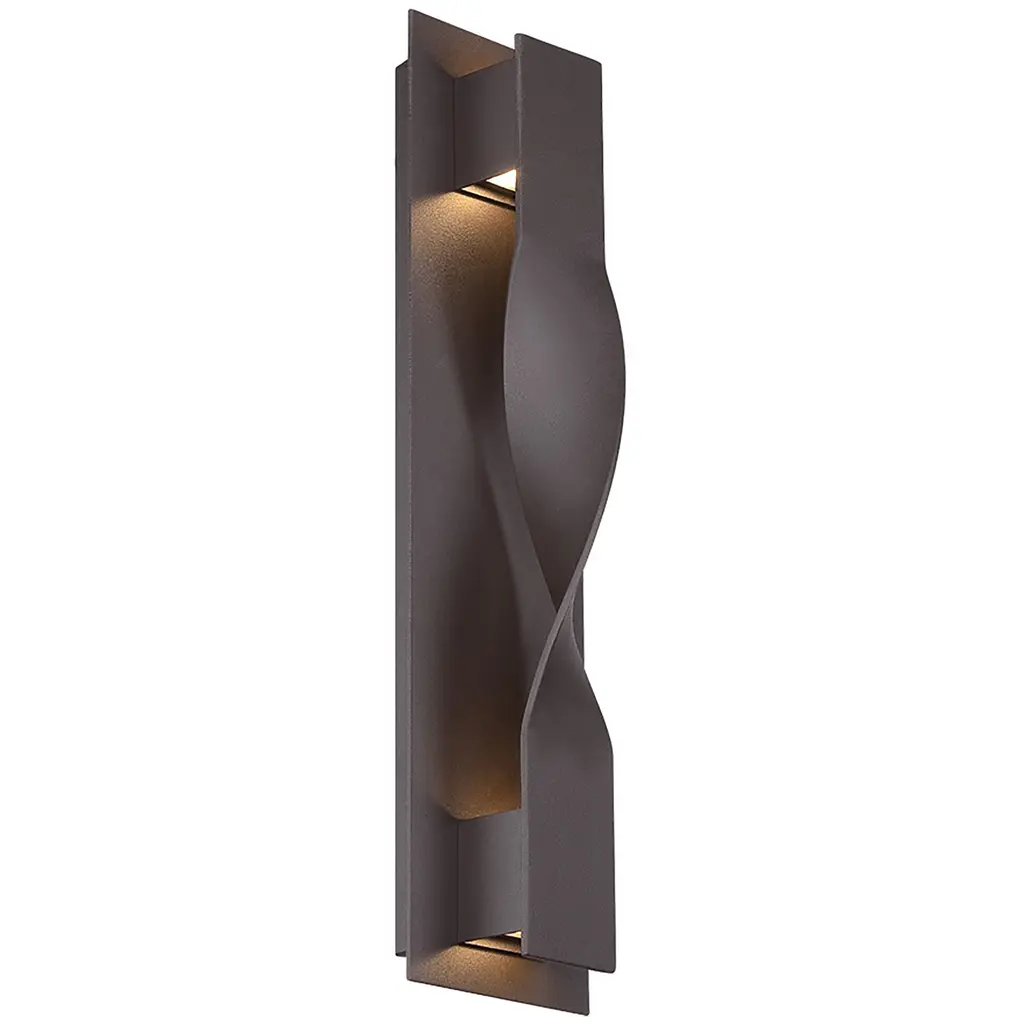 Add a "twist" of sophistication to your outdoor patio or your hallway with the Twist Indoor/Outdoor LED Wall Sconce from Modern Forms. Contemporary styled with an eye for pleasing form, a single aluminum ribbon gently twists at the center, showing off its elegant contours with highlights and shadows. Nestled behind the lovely twisted accent, two separate LEDs on the top and bottom stream a neat up and downlight, accentuating the vertical structure and livening up the piece with a clean ambient glow.