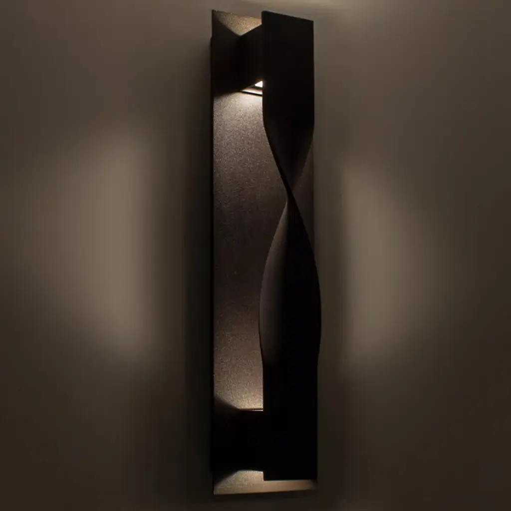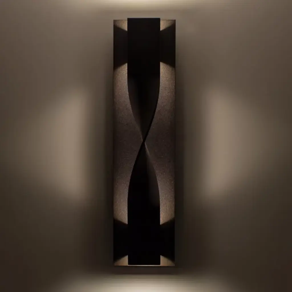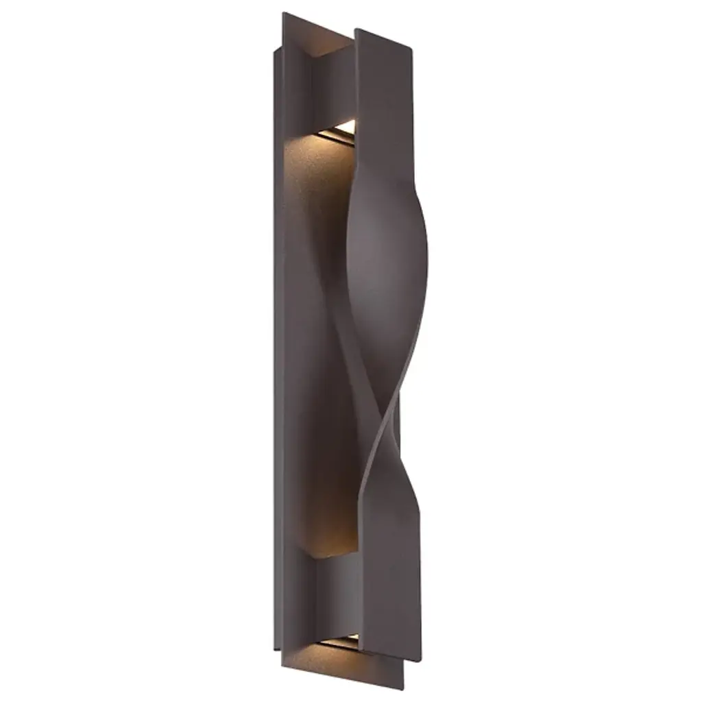 Add a "twist" of sophistication to your outdoor patio or your hallway with the Twist Indoor/Outdoor LED Wall Sconce from Modern Forms. Contemporary styled with an eye for pleasing form, a single aluminum ribbon gently twists at the center, showing off its elegant contours with highlights and shadows. Nestled behind the lovely twisted accent, two separate LEDs on the top and bottom stream a neat up and downlight, accentuating the vertical structure and livening up the piece with a clean ambient glow.